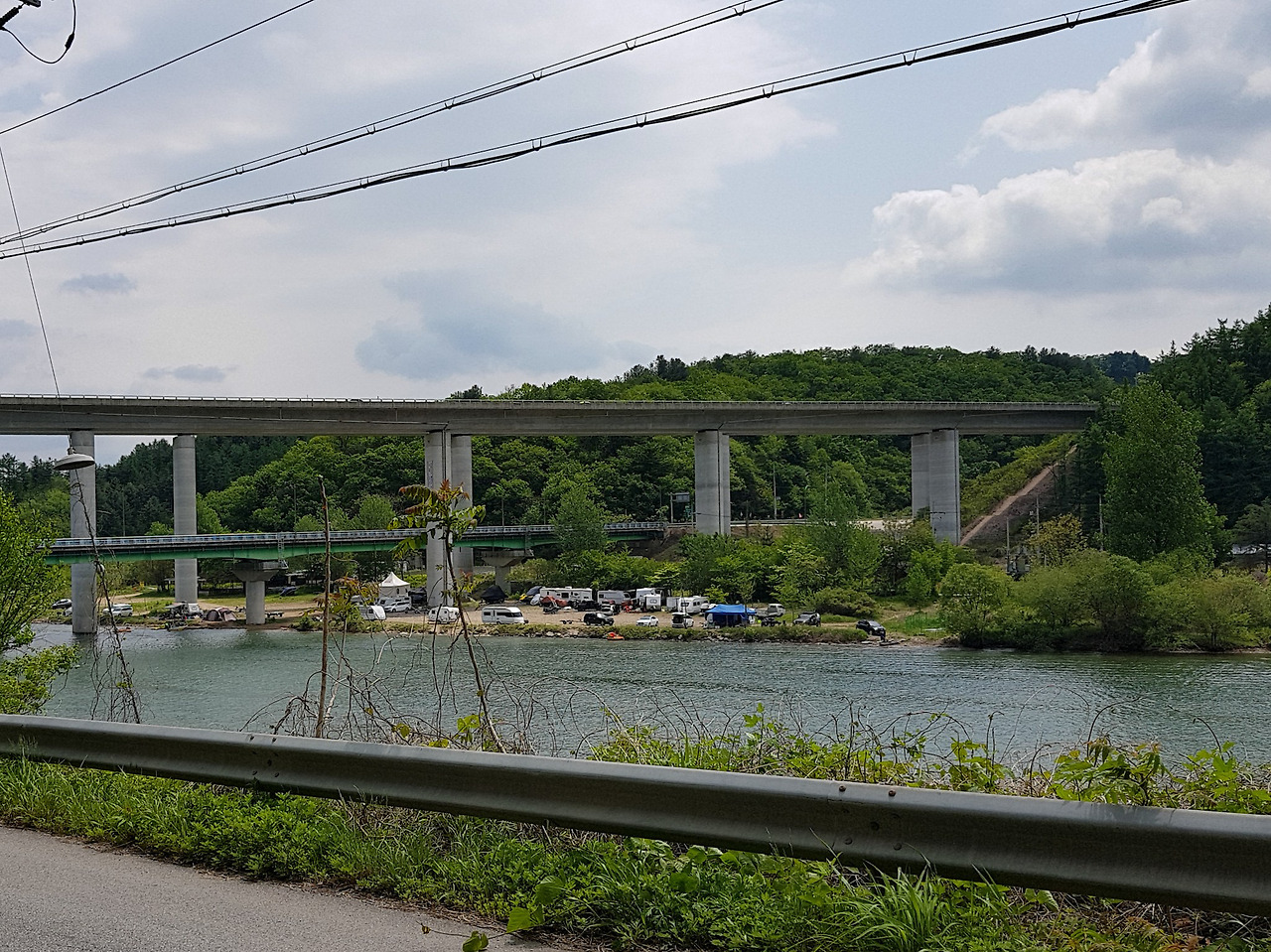 날씨가 좋아서 그런지 홍천강변에 캠핑하러 온 사람들이 많이 보인다.