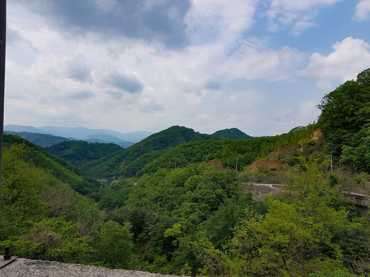 술어니 고개 정상에서 가평 방향을 보니 아직 첩첩 산중이다.