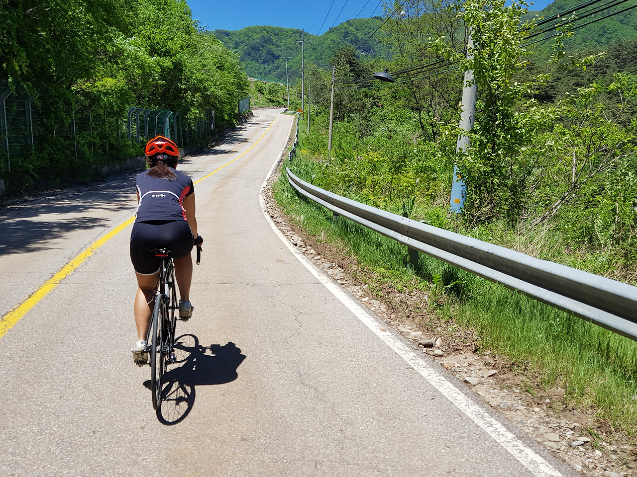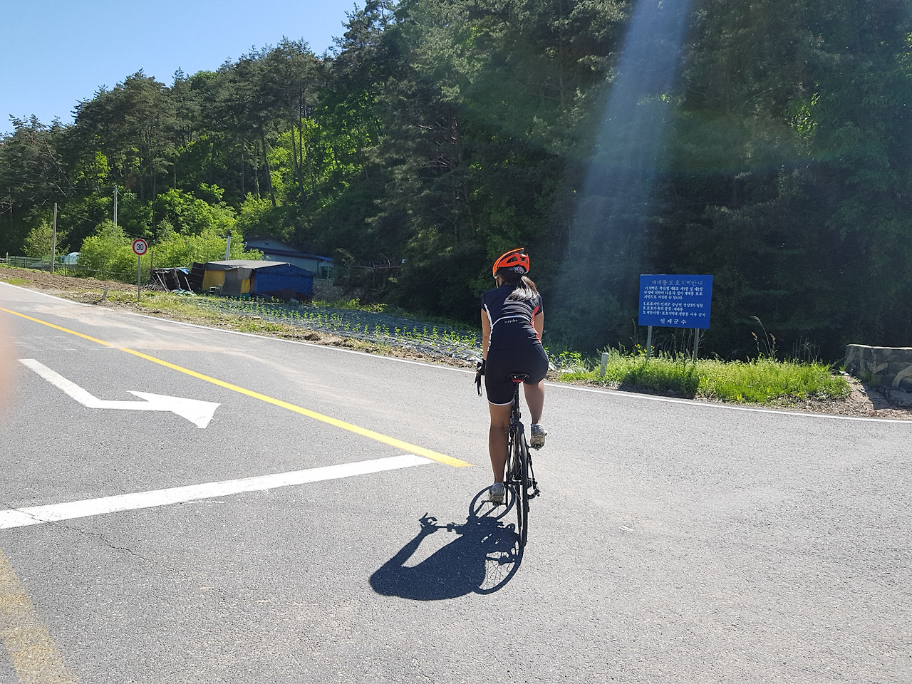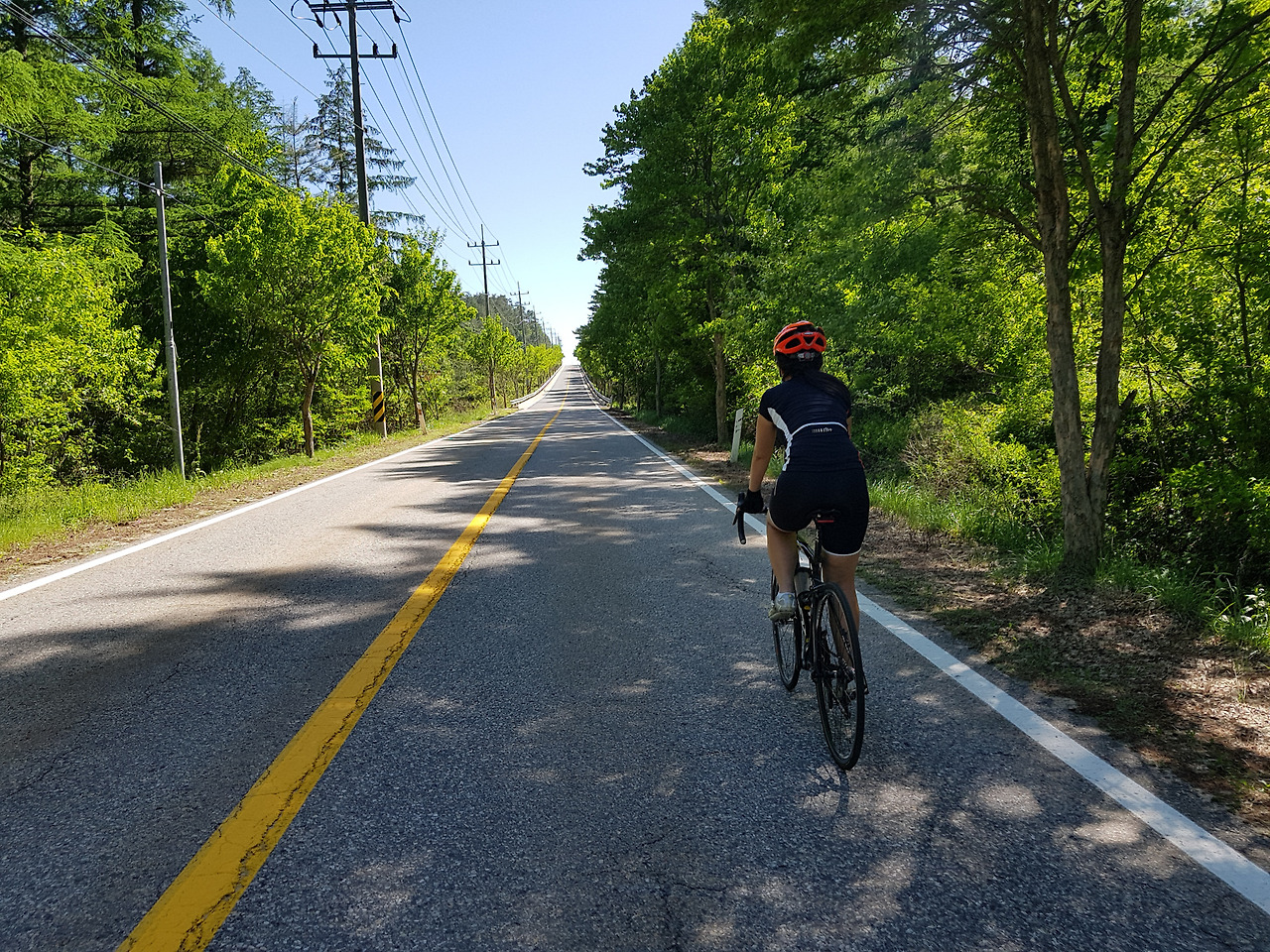 북쪽에서 남쪽으로 가는 행치령로는 길고 곧은 직선 오르막이다. 가로수가 햇빛을 가려주니 시원하게 오르막길을 올라간다.