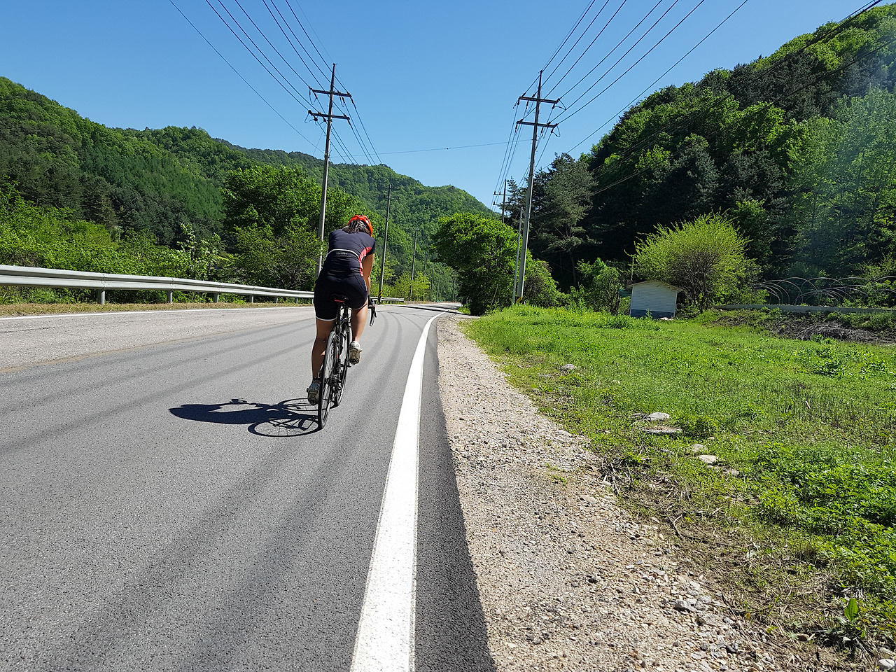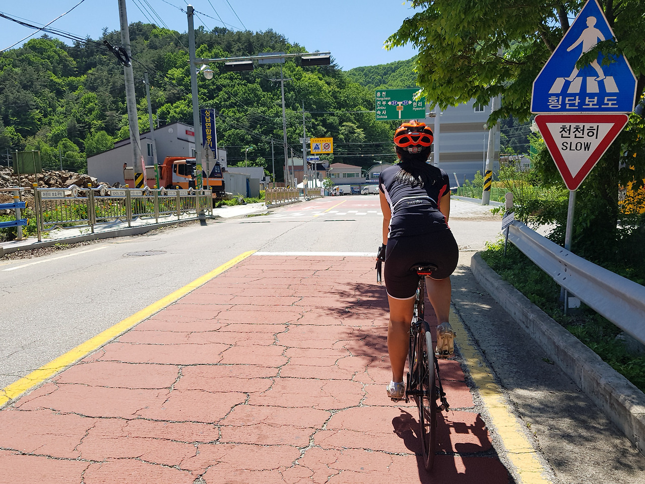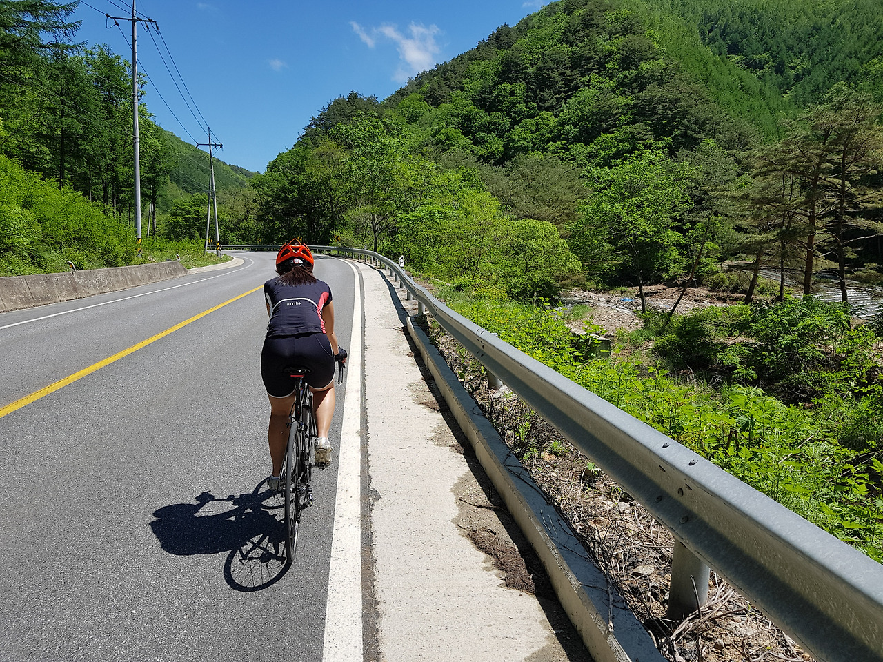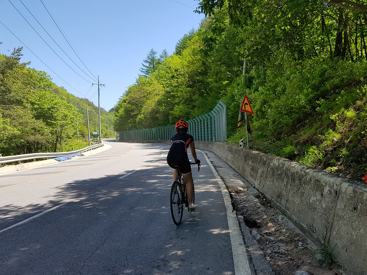 북쪽에서 남쪽으로 가는 행치령로는 길고 곧은 직선 오르막이다. 가로수가 햇빛을 가려주니 시원하게 오르막길을 올라간다.