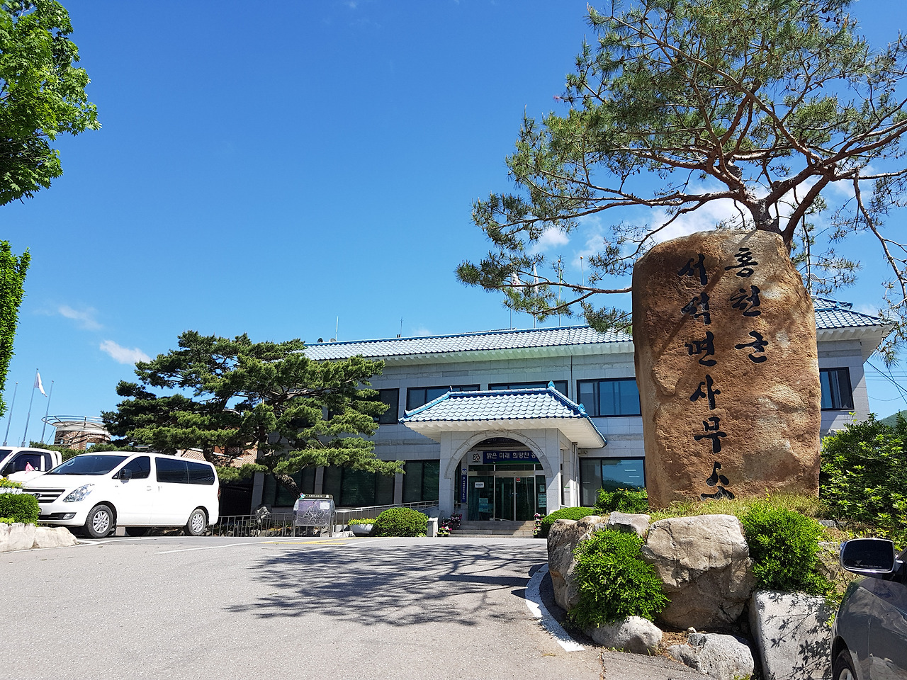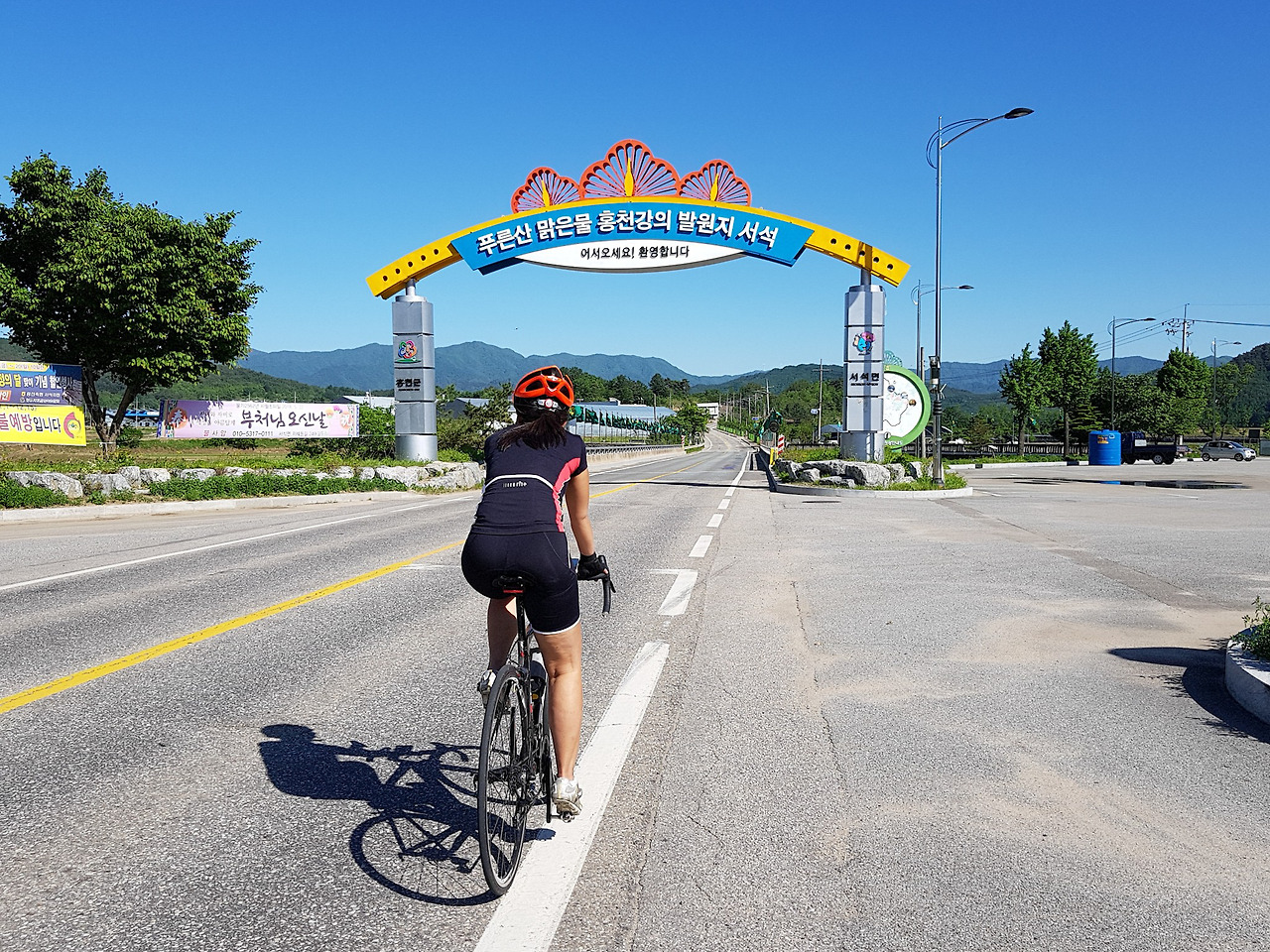 홍천군 서석면사무소에서 출발을 준비한다. 주말에 편안하게 주차할 수 있는 주차 공간이 넓고 화장실도 편하게 쓸 수 있으니 자전거 여행의 출발지로 면사무소만한 곳은 없다. 며칠 동안 내린 비 덕분에 하늘이 아주 맑아져서 정말 화창한 날씨다. 어디를 가도 좋은 날씨인데 이 코스가 이런 날씨에 어울리는 좋은 코스인지 살짝 고민을 하면서 출발한다.