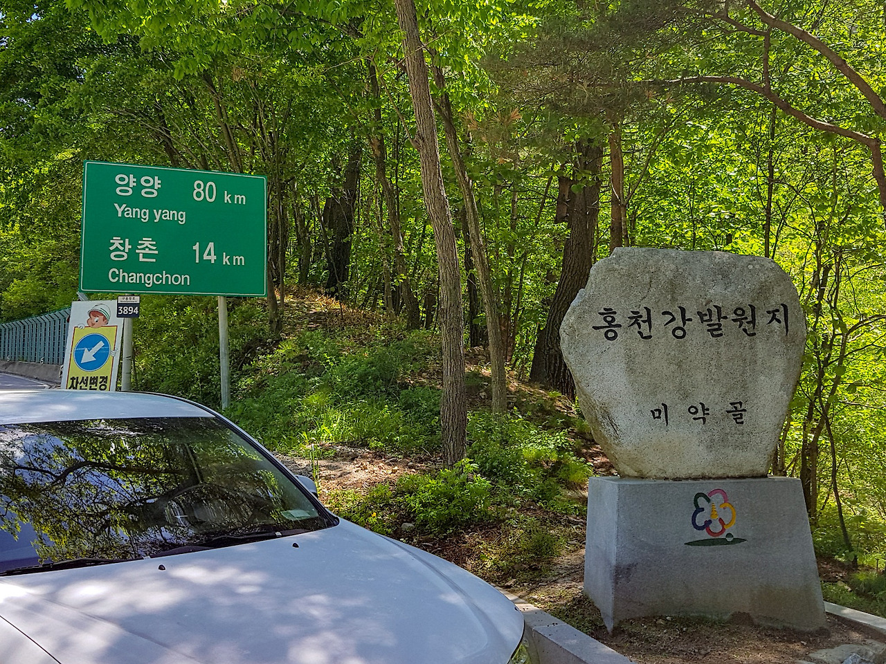 을 거슬러 올라간다. 길 이름에서 알 수 있듯이 구룡령을 넘어서 양양까지 가는 길인데 중간에 인제 쪽으로 방향을 틀어야 한다. 길 옆으로 폐쇄된 휴게소들이 많은데 교통망이 지금처럼 좋지 않았던 예전에는 이 한적해보이는 도로가 양양으로 가는 빠르고 좋은 길이라 차들이 많이 다녔다고 한다.