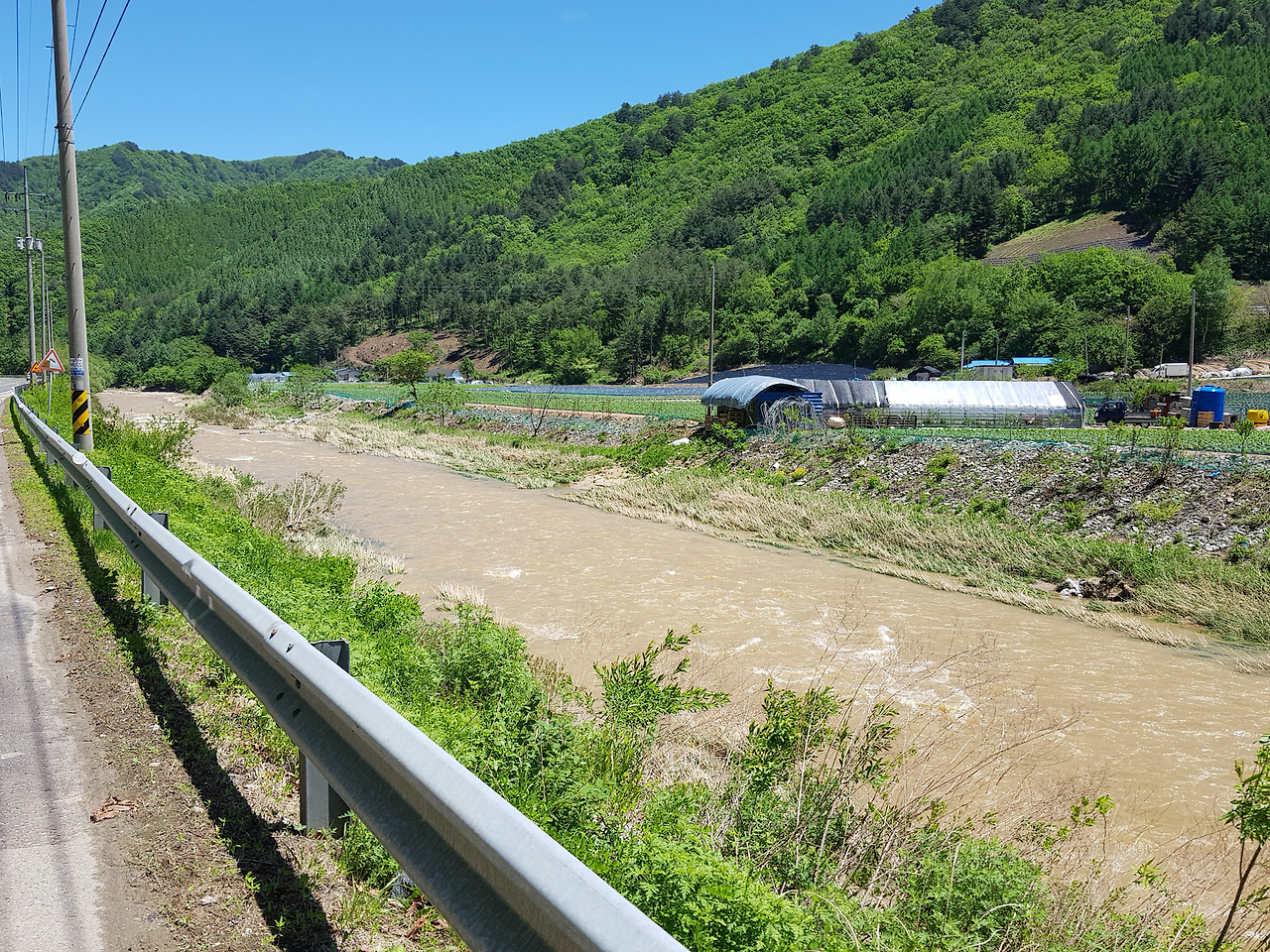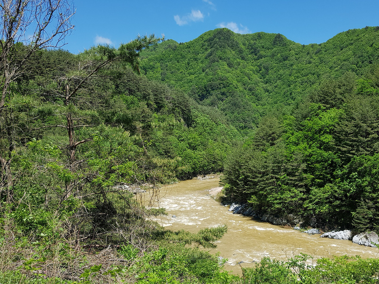 홍천강 상류인 내촌천은 비교적 맑은 편이었는데 소양강 상류인 자운천은 흙탕물이 거세게 흐른다.