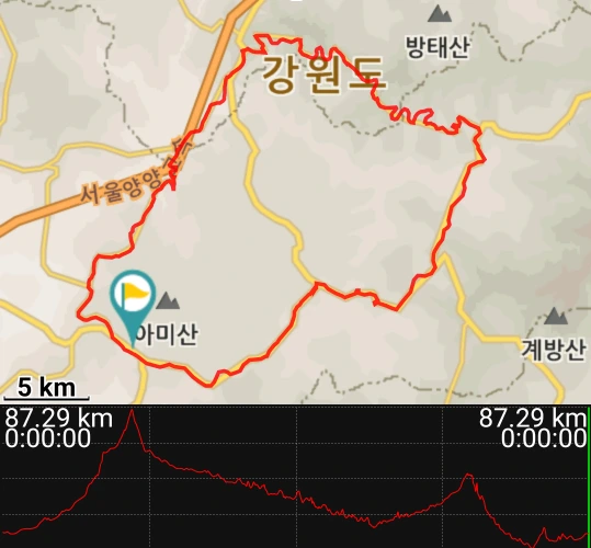 이번 주에도 서울-양양 고속도로로 쉽게 접근할 수 있는 강원도 산 속을 달리기로 한다. 아예 군청 소재지에서 벗어난 산 속으로만 달려보기 위해서 홍천군 서석면에서 인제군 상남면 사이를 순환하는 코스를 구성해보았다.
