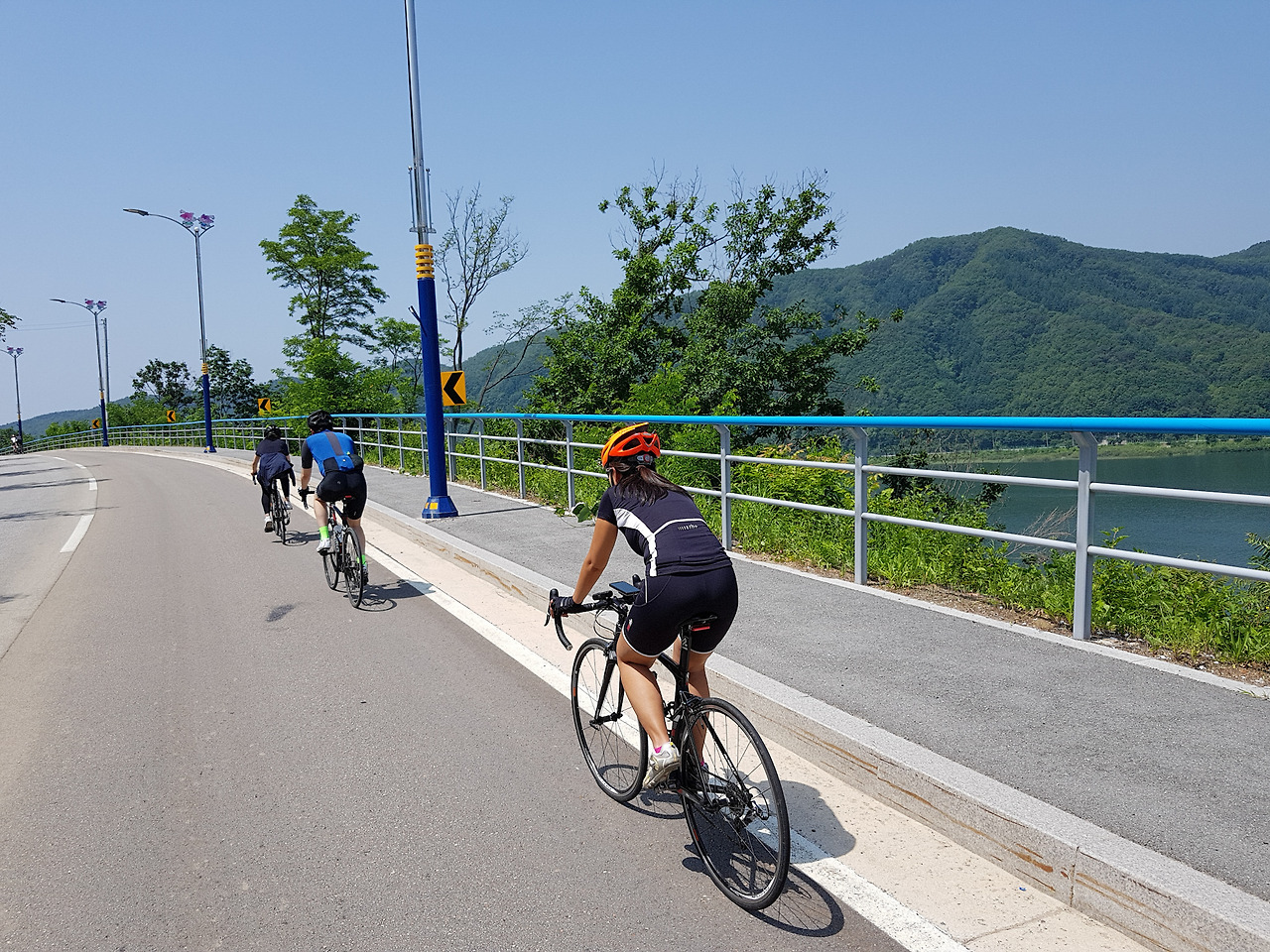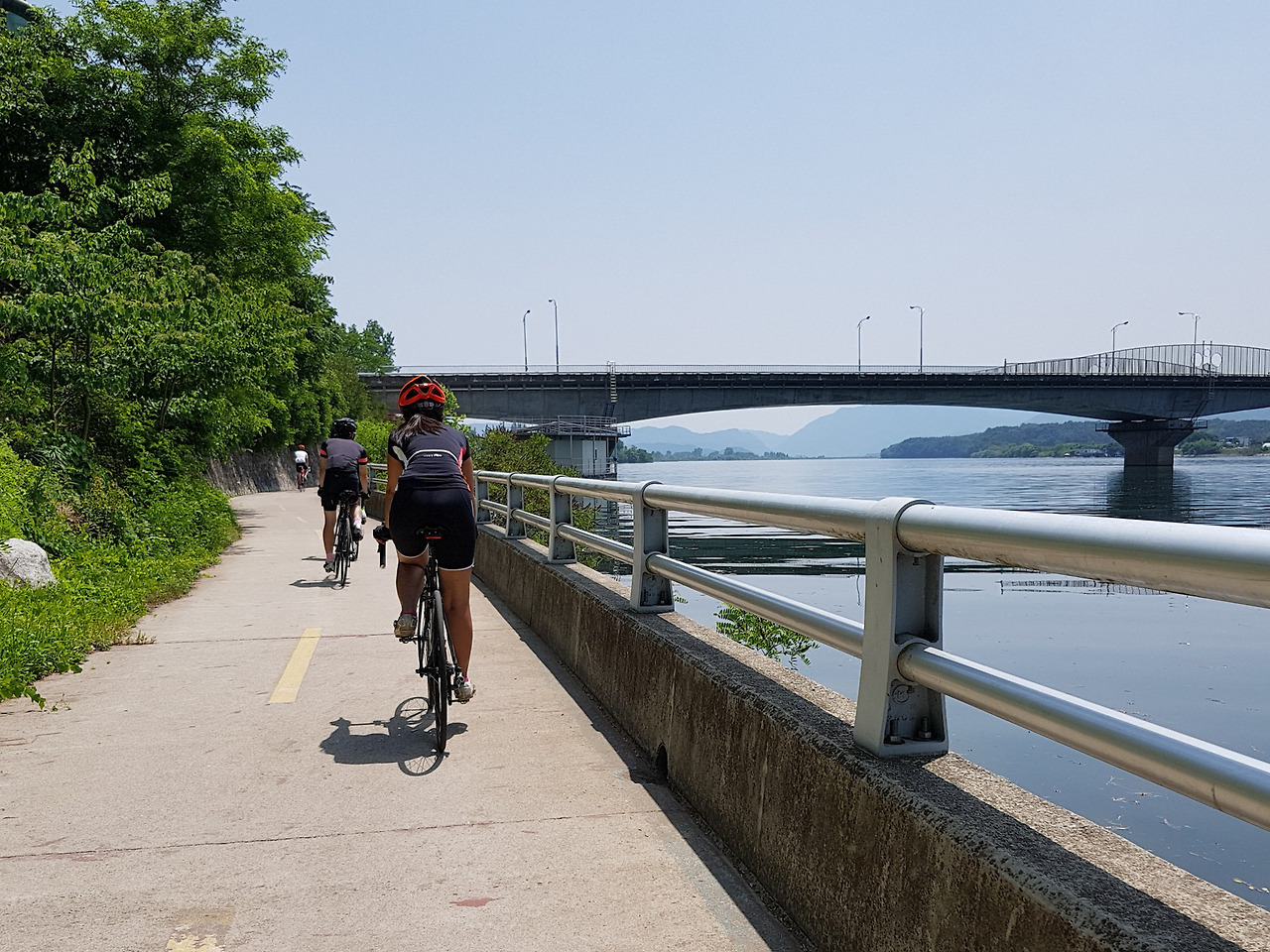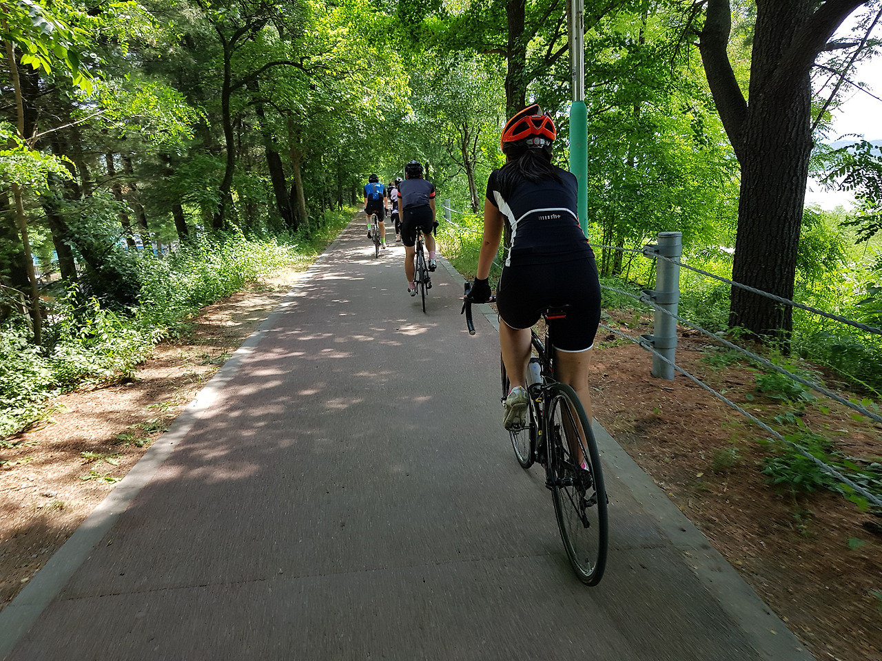 평소에는 지니님과 둘이서만 다니다보니 함께 자전거 타는 사진이 거의 없는데 다른 분이 사진을 찍어준 덕분에 둘이 함께 타는 사진이 생겼다. 보통은 이렇게 지니님이 앞에서 달리고 내가 뒤에 따라 다닌다.