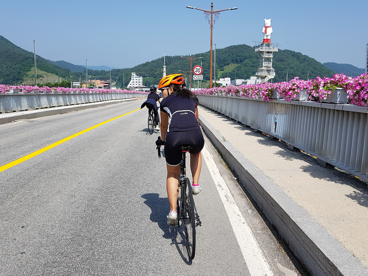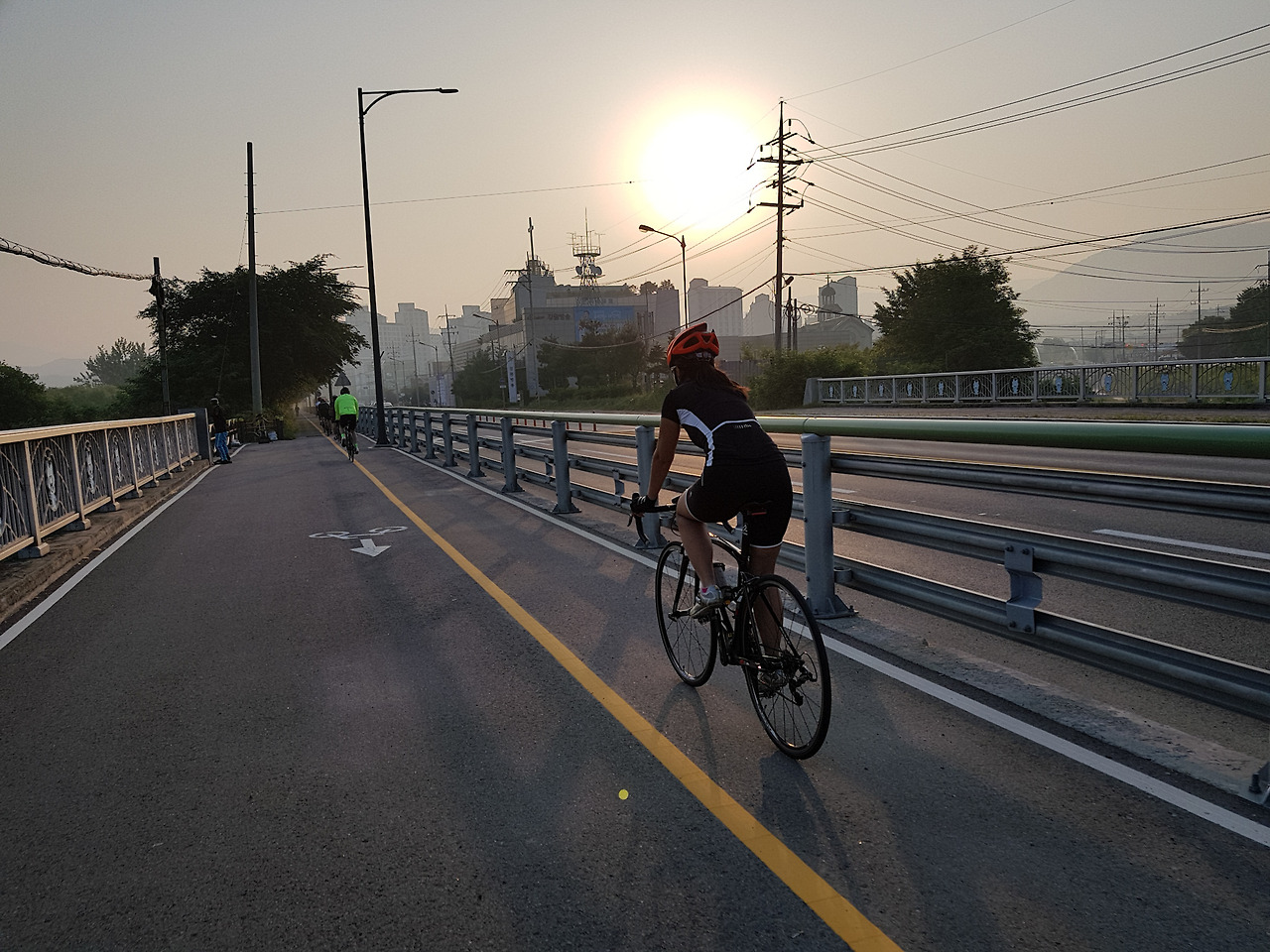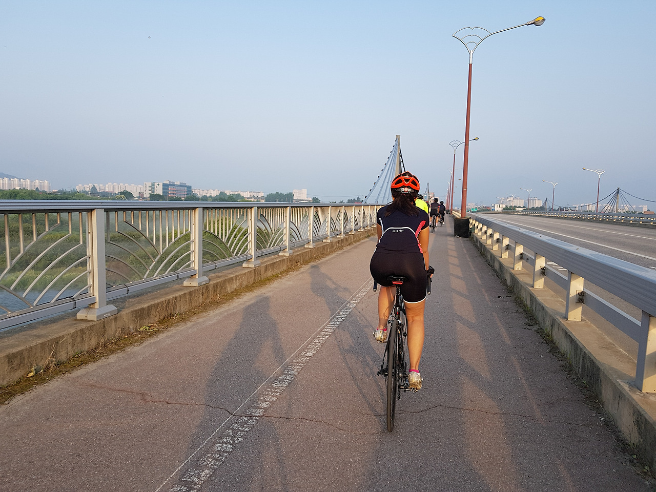 평소에는 지니님과 둘이서만 다니다보니 함께 자전거 타는 사진이 거의 없는데 다른 분이 사진을 찍어준 덕분에 둘이 함께 타는 사진이 생겼다. 보통은 이렇게 지니님이 앞에서 달리고 내가 뒤에 따라 다닌다.