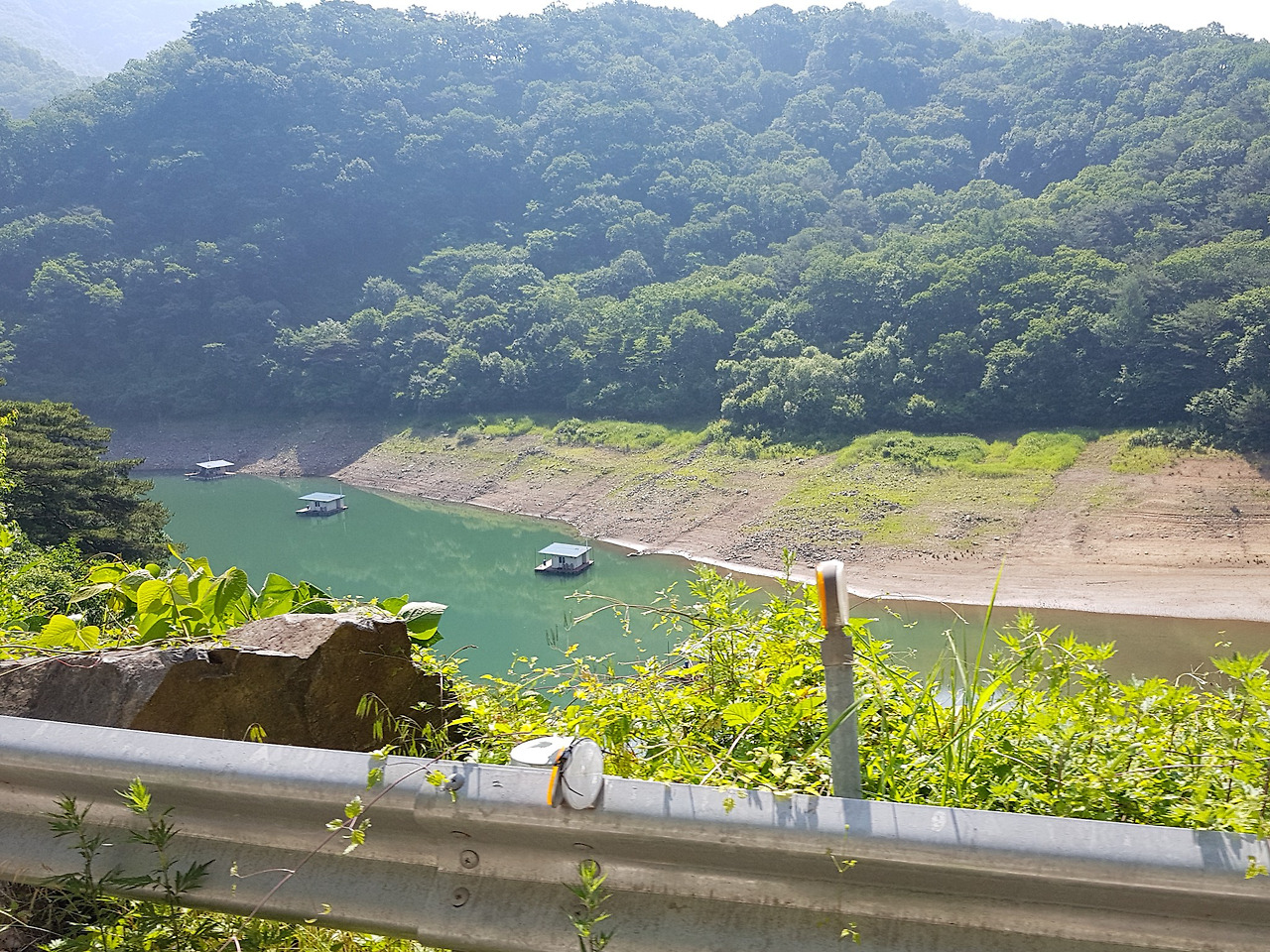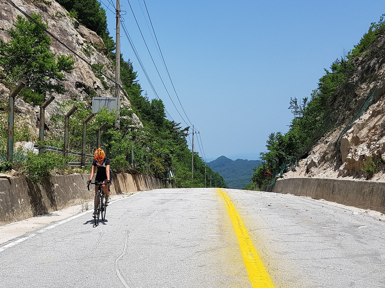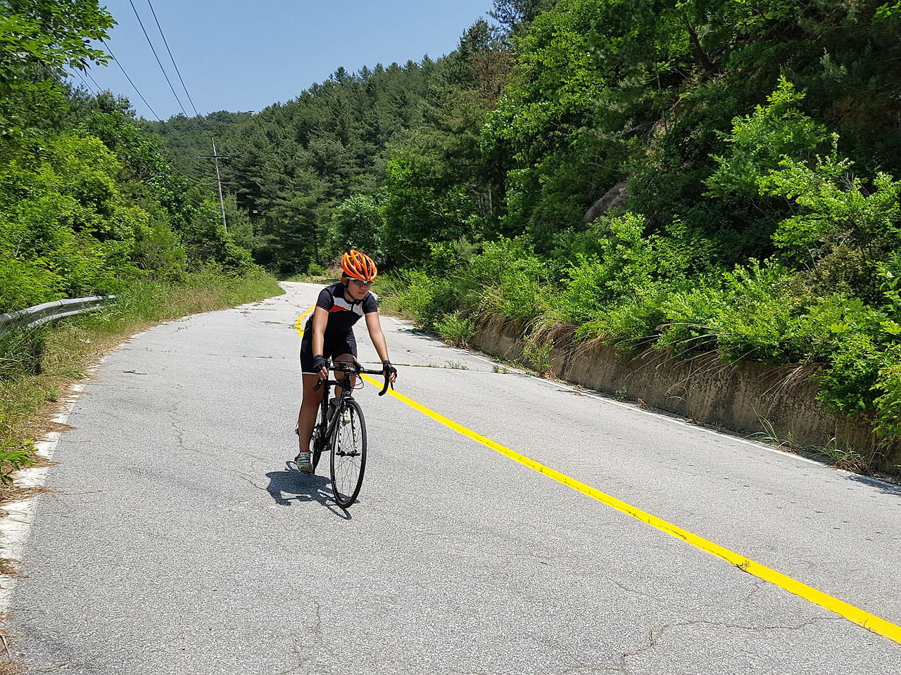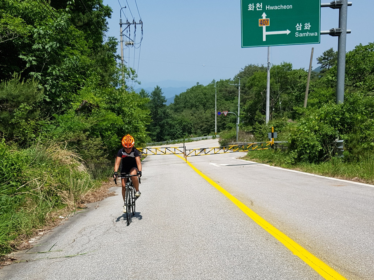 반대편 옛길 입구 바리케이트를 넘어가니 엄청난 수의 자전거 동호인들이 올라오고 있었다. 역주행에 무단횡단에 통제가 안 되는 이들하고 중간에 맞닥트리지 않은게 다행이다. 초보자가 끼어서 그런지 우리 일행은 아직 오질 않는다. 가장 더울 때에 그늘도 없는 곳에서 기다리긴 싫어서 고탄리의 하나로마트에서 아이스크림을 먹으면서 기다리기로 한다.