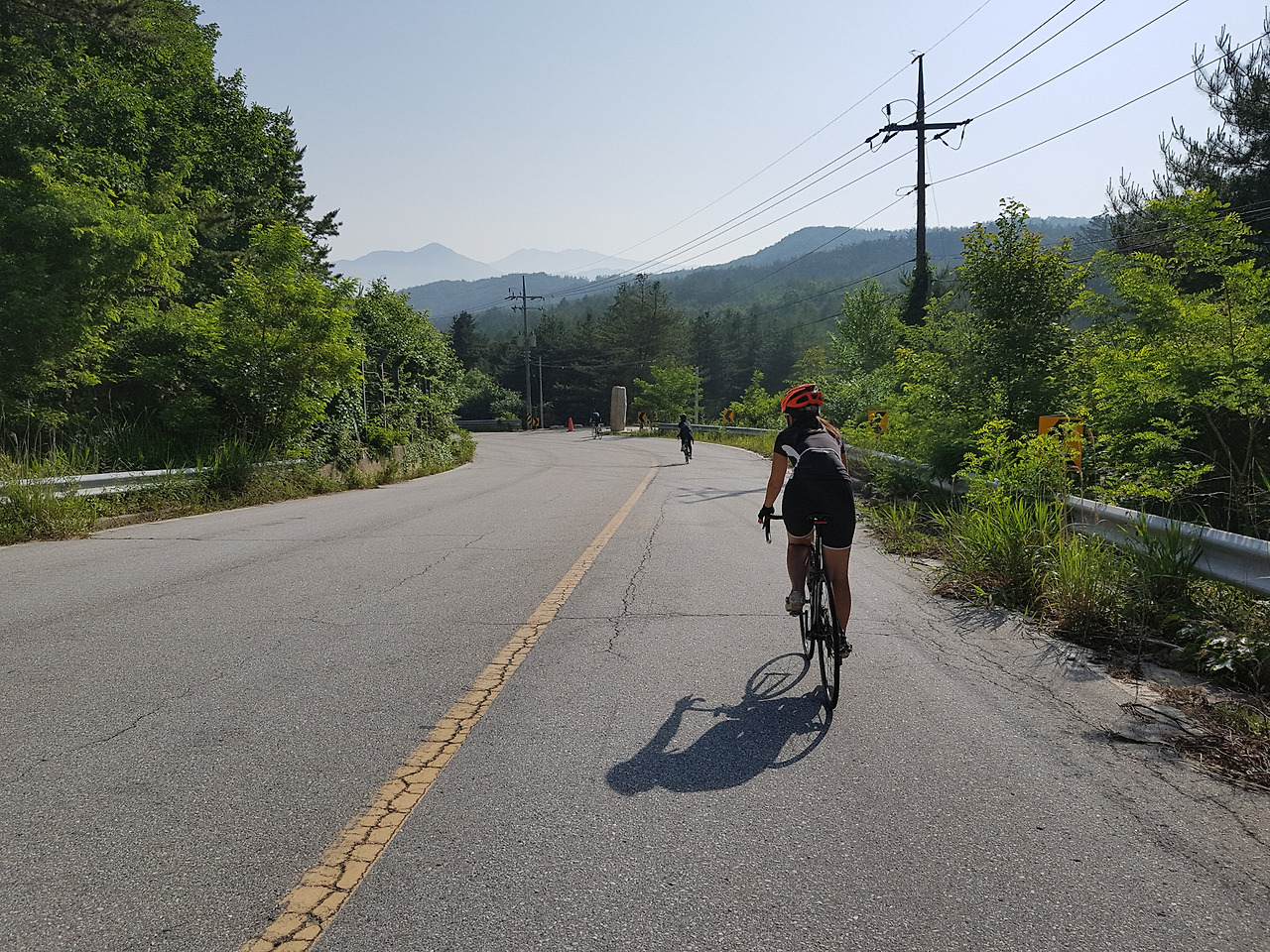 우리는 화천 방향으로 한산해 보이지만 은근히 차가 다니는 길을 따라 달린다.
