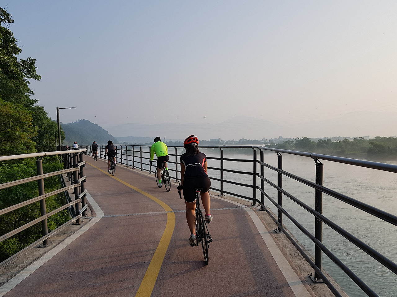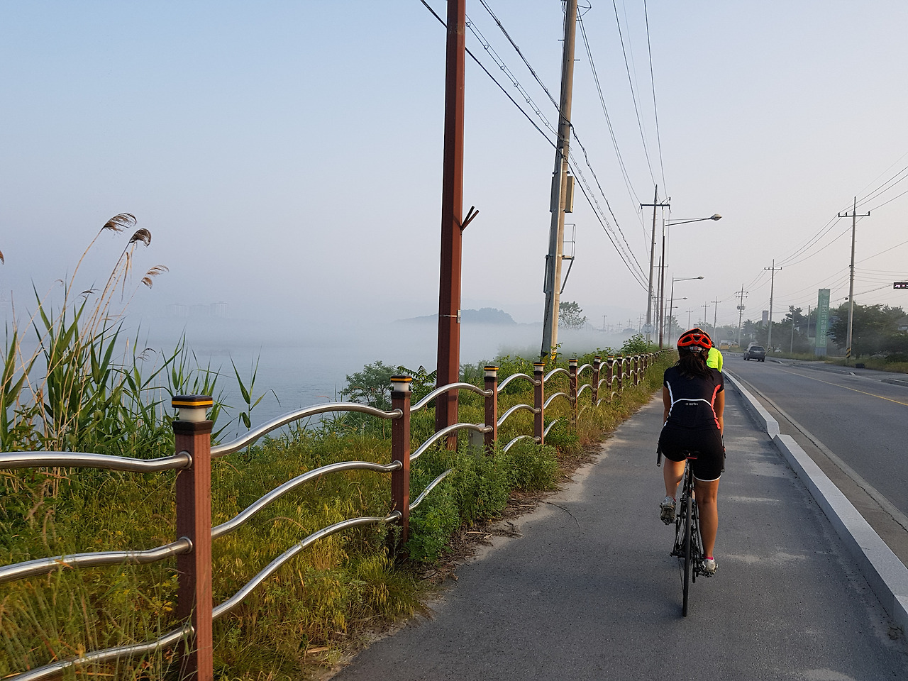 소양강을 따라 자전거길을 달린다. 물안개가 수면 위로 낮게 깔리고 물냄새가 퍼지니 제법 분위기가 있다.
