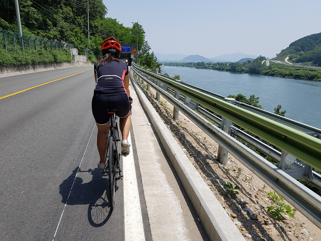 이제 북한강 옆 찻길을 따라서 쭉 달리기만 하면 된다.