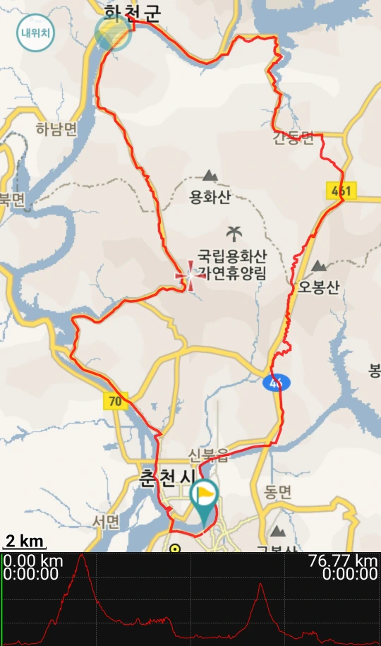 현충일인 오늘은 지니님의 직장 동료들과 함께 춘천에서 자전거를 타기로 했다. 배후령 고개를 넘어 화천에서 다시 부다리고개를 넘어 돌아오는 코스이다.