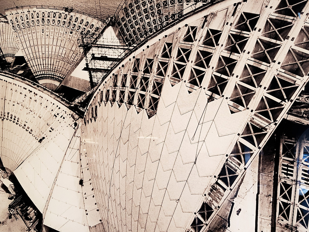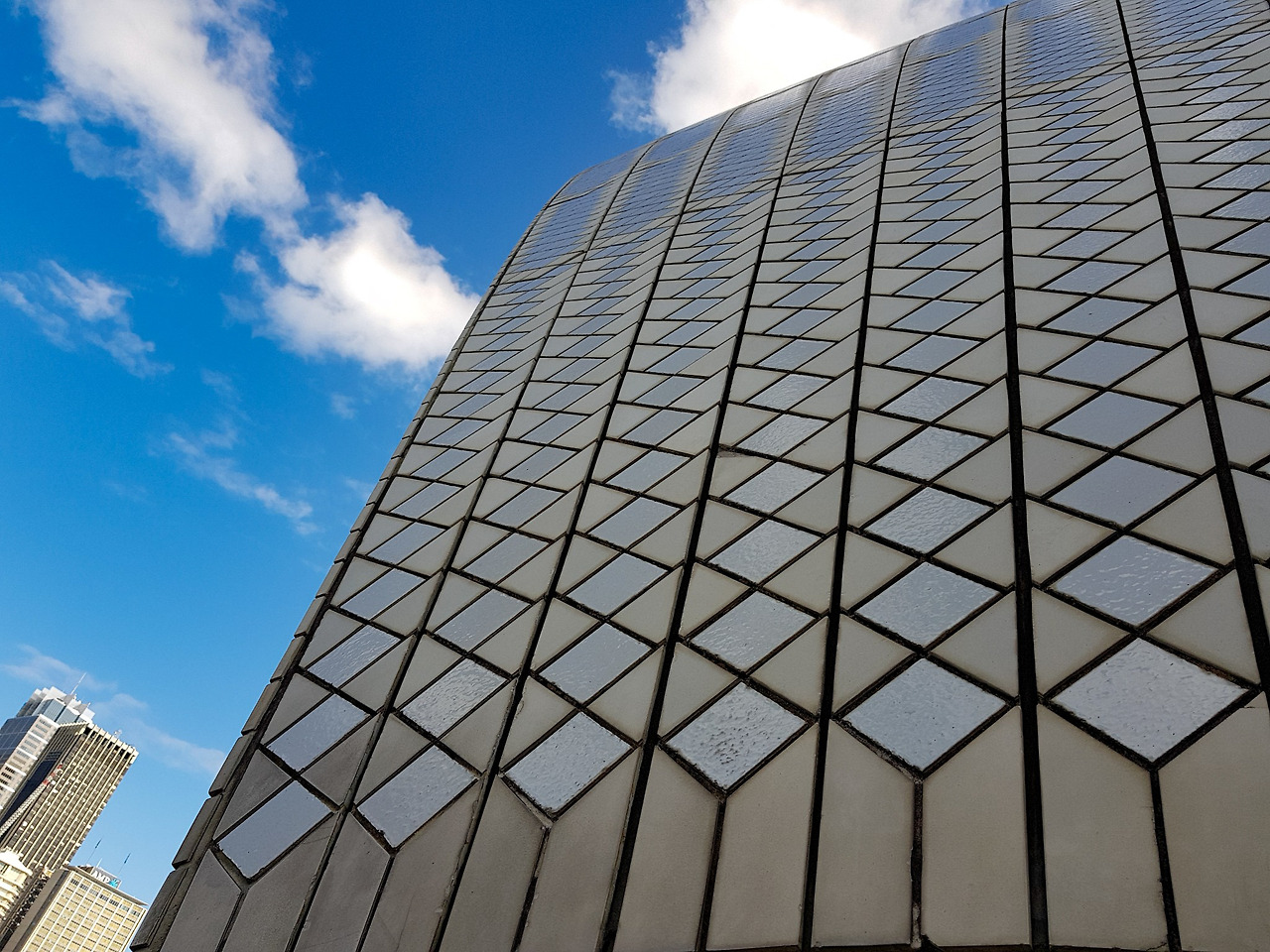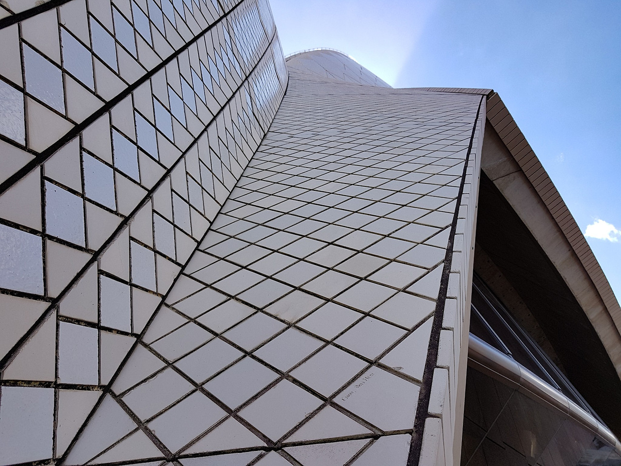 오페라 하우스의 외벽을 가까이에서 보면 오래된 화장실에서 볼 수 있는 빛바랜 타일들이 다닥다닥 붙어있는 것을 볼 수 있다.