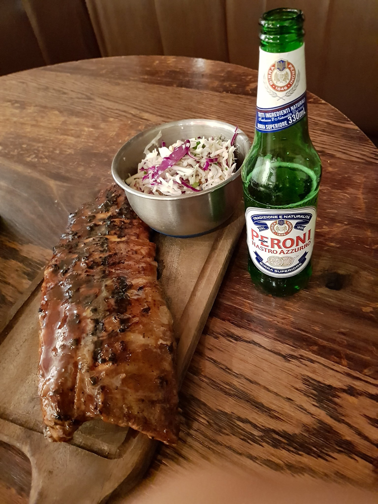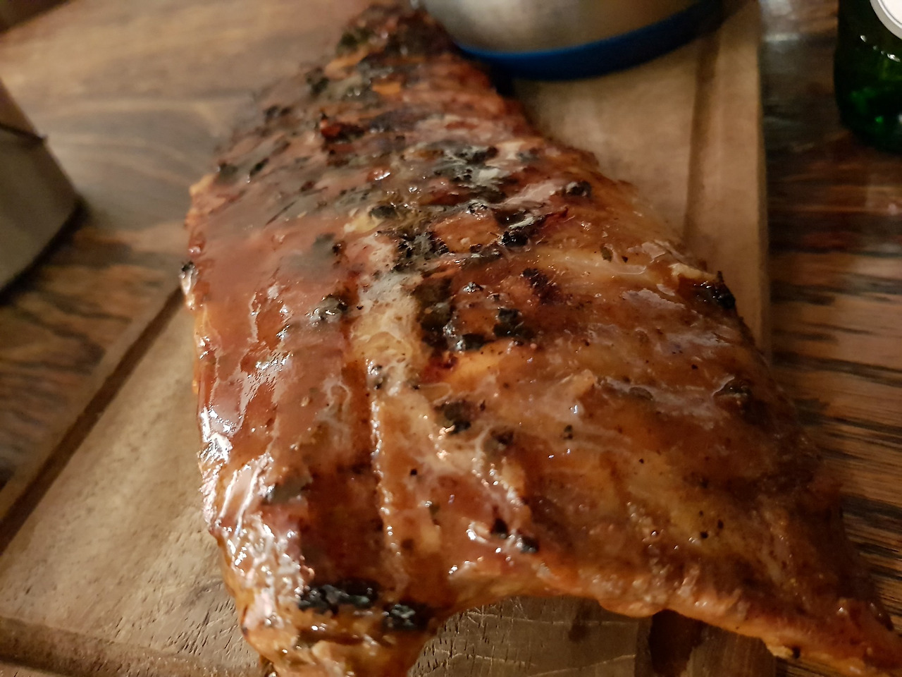 내가 주문한 것은 혼자 먹기 적당한 크기의 바베큐립과 페로니 맥주 한 잔. 셀러드까지 바베큐립에 포함되서 나오니 나쁘지 않다.