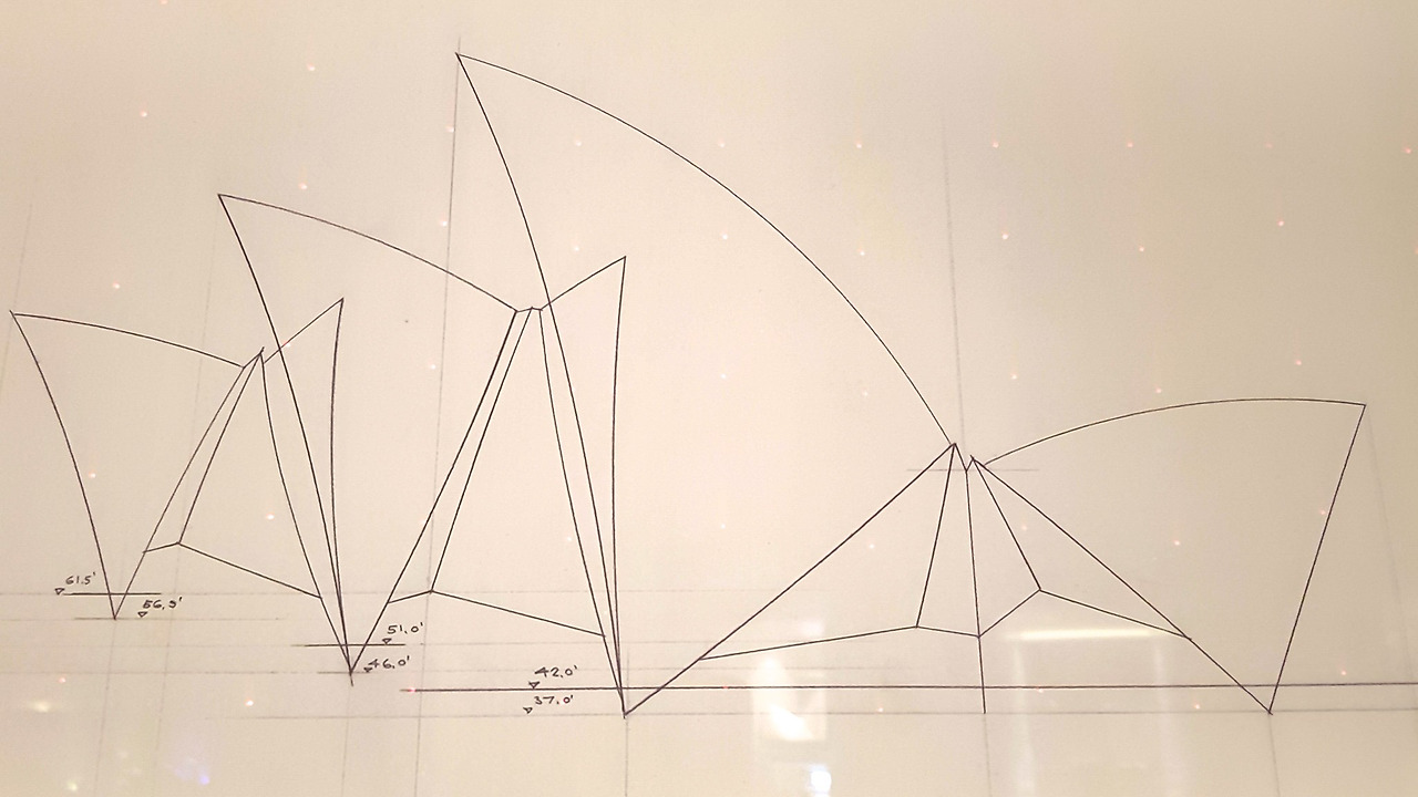 이 이상한 모양은 덴마크의 건축가 이외른 우촌이 오렌지를 까먹다가 떠올린 것이라고 한다.