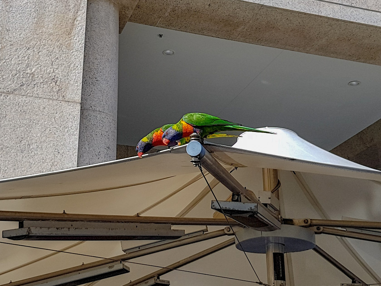 다시 오페라 하우스 쪽으로 가는데 갈매기들 뿐만 아니라 앵무새들도 사람들의 음식을 노리고 있다.