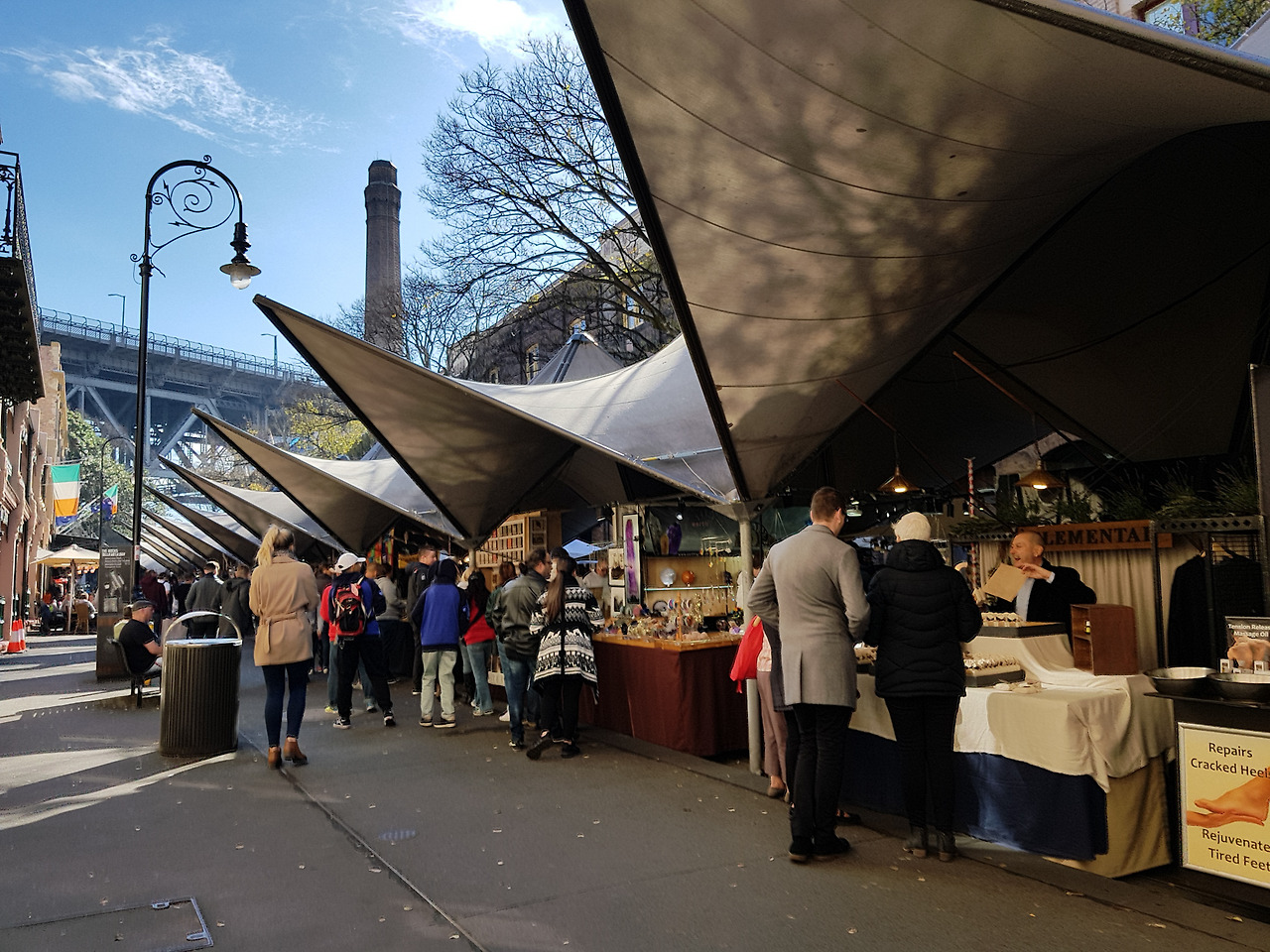 짐을 몽땅 두고 가볍게 록스 주말 마켓으로 간다. 금요일부터 일요일까지 하는 시장이라고 한다. 관광객들을 대상으로 한 다양한 기념품이나 수제품을 판다. 여행가서 기념품을 사는데 Made in China가 붙은 것을 피하는건 기본이니 기념품을 사고 싶다면 록스 주말마켓도 좋은 선택이다.