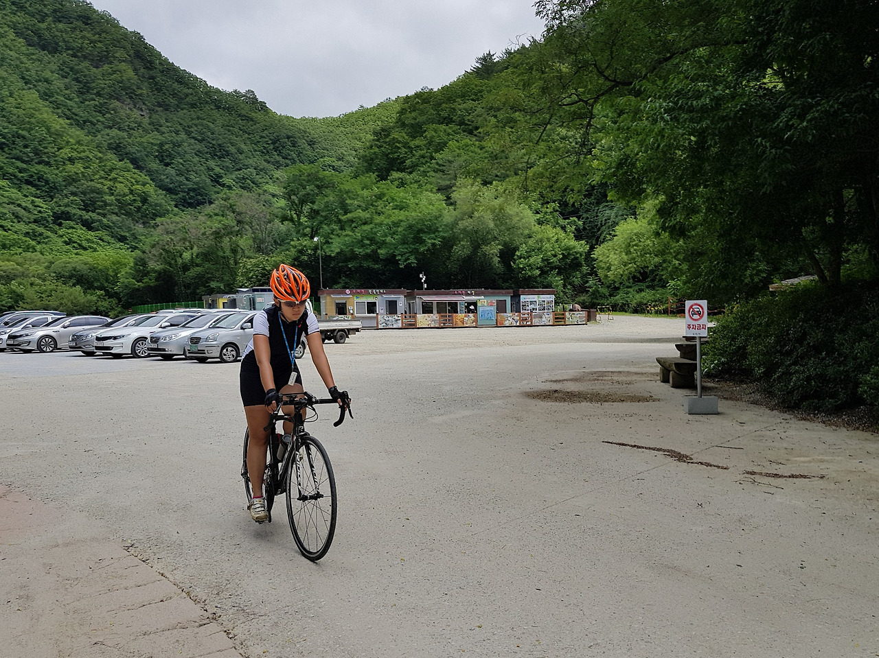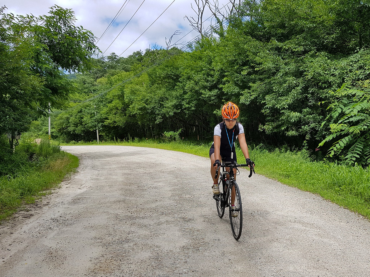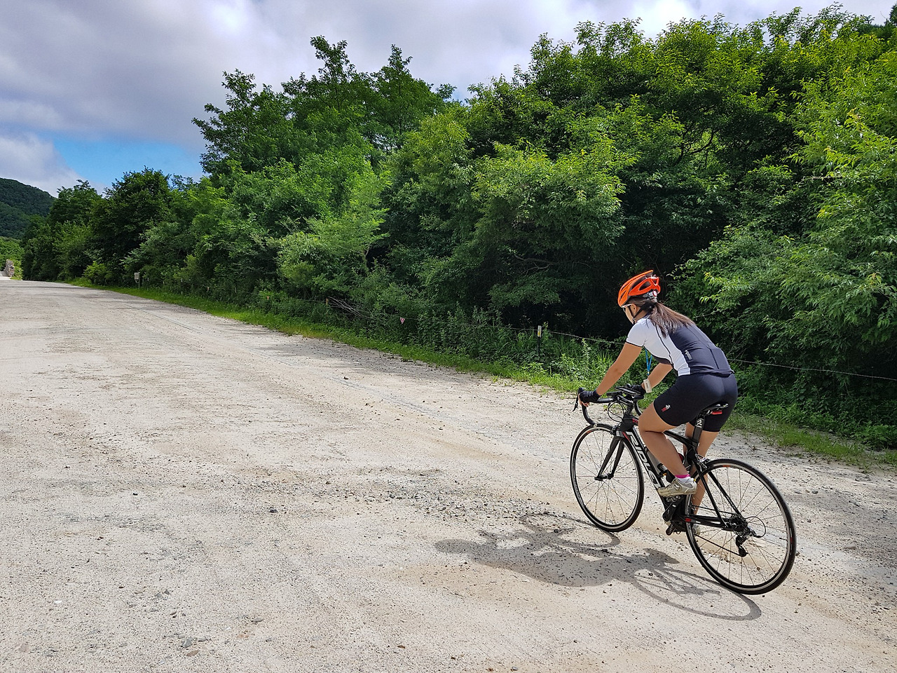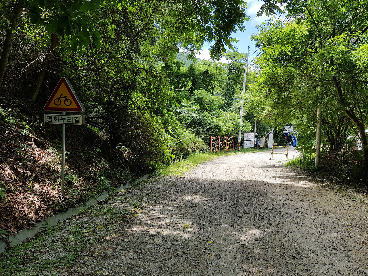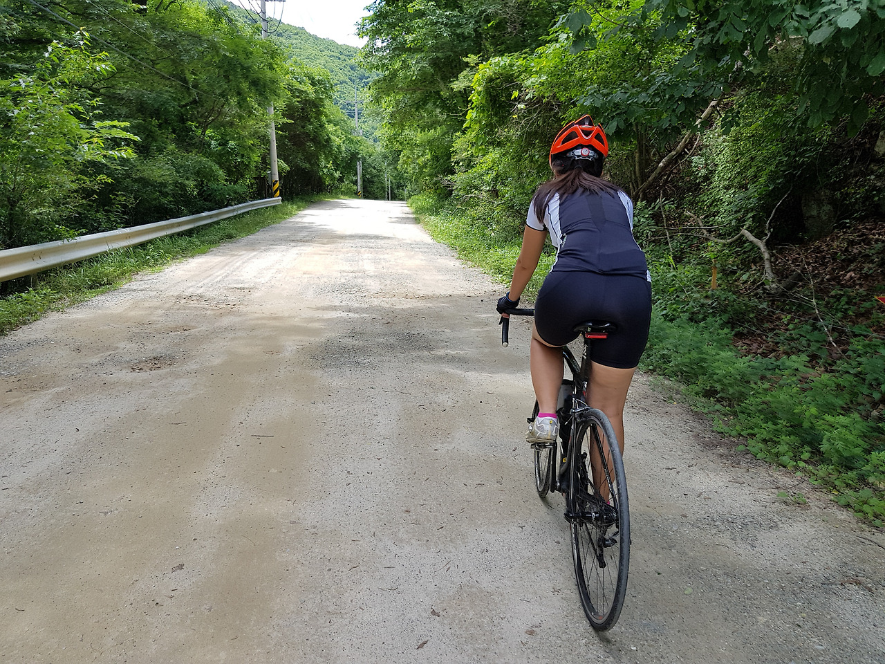 이제 두타연을 빠져나간다. 로드바이크로 비포장길을 다시 빠져나가려니 영 귀찮다.