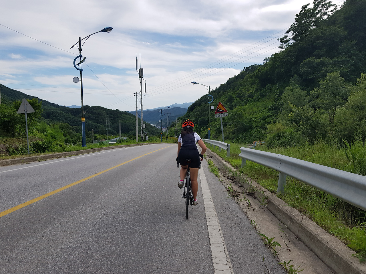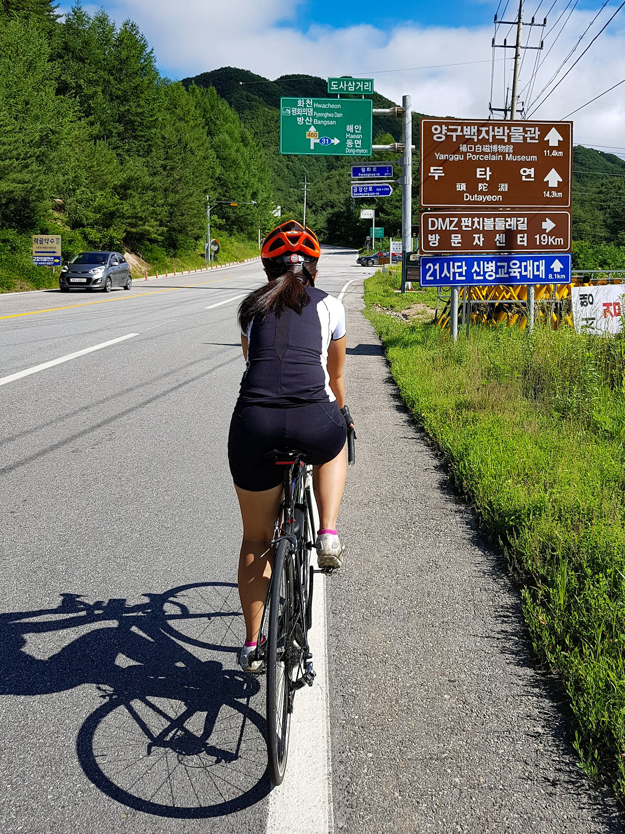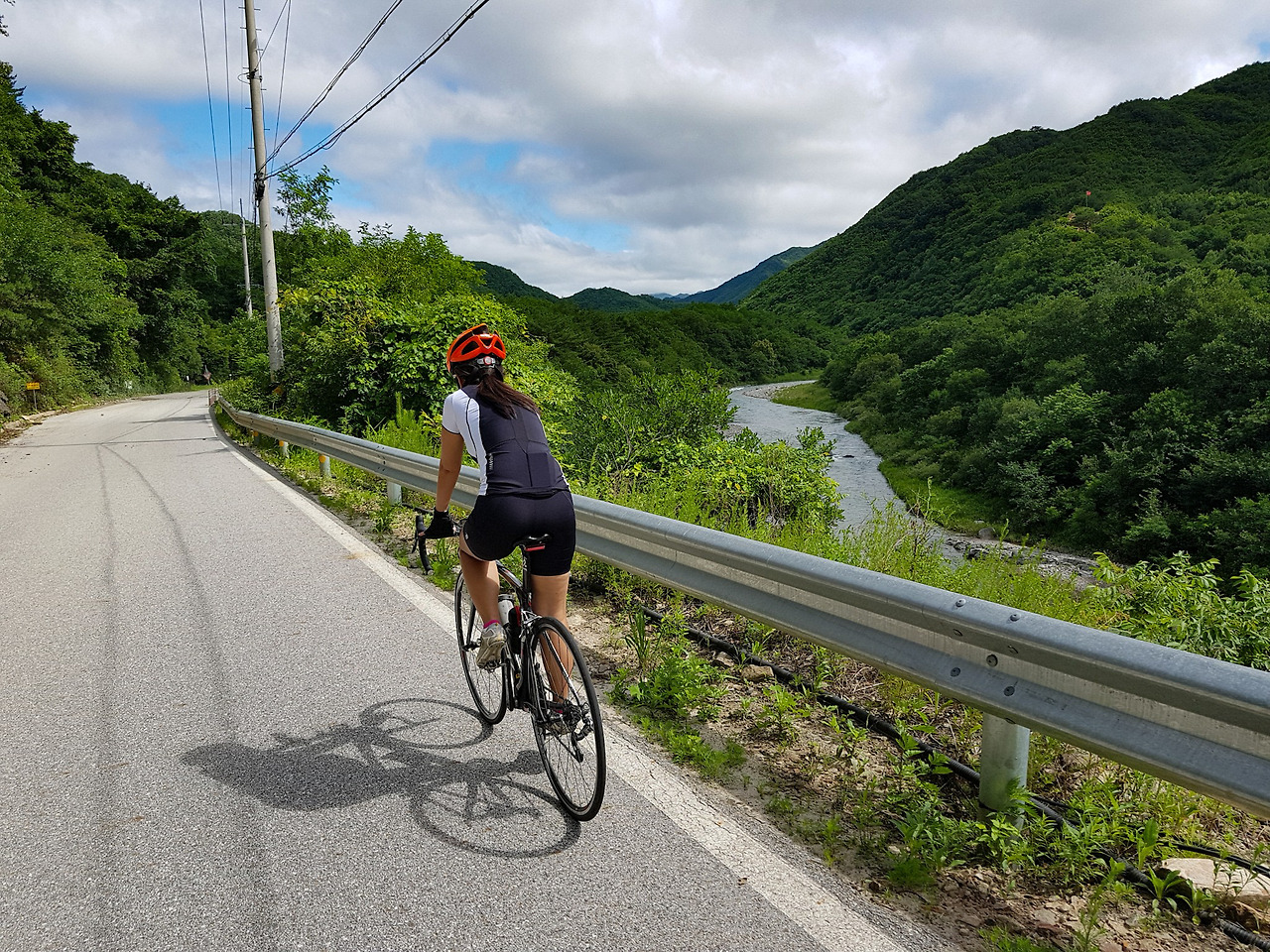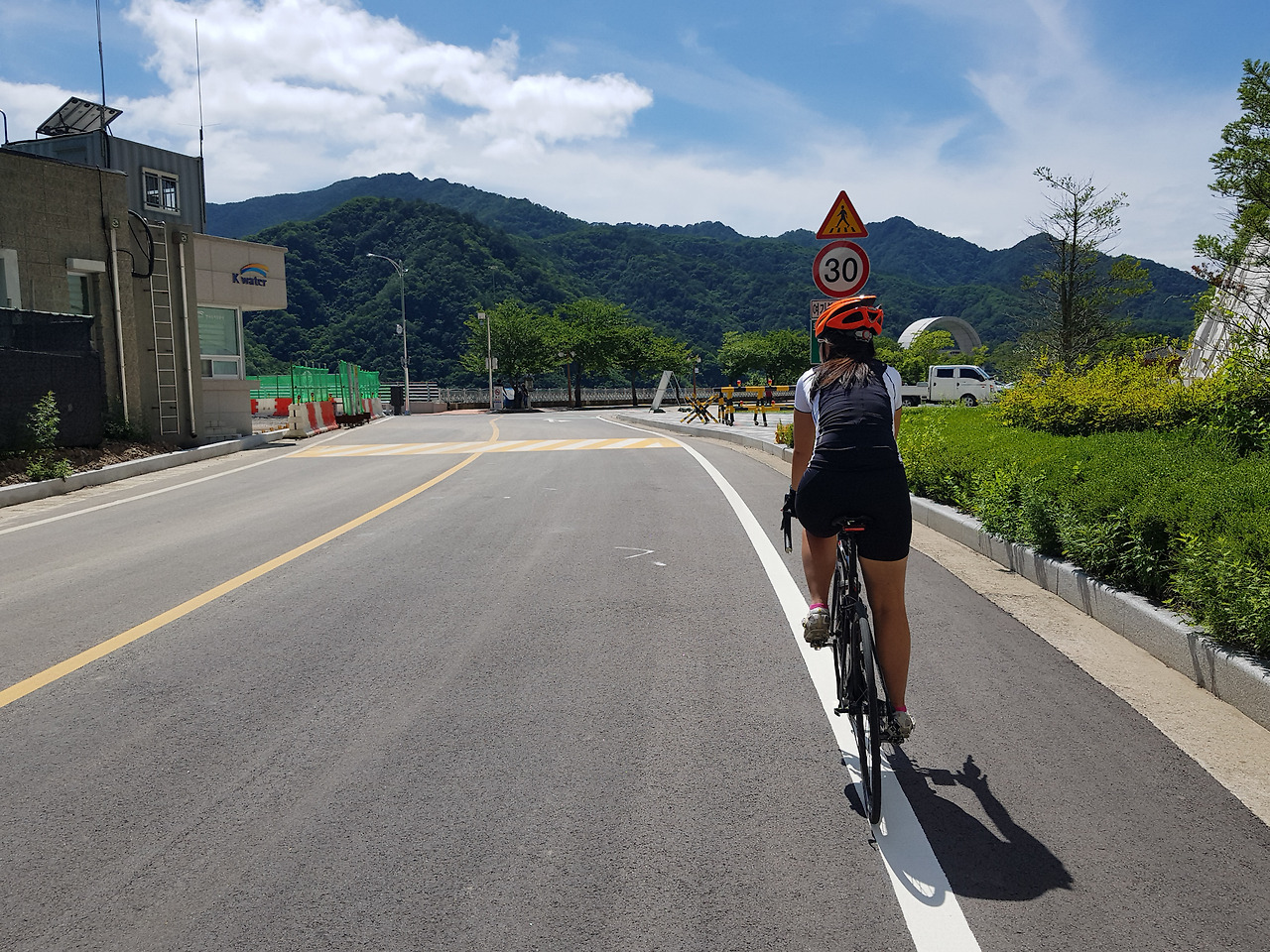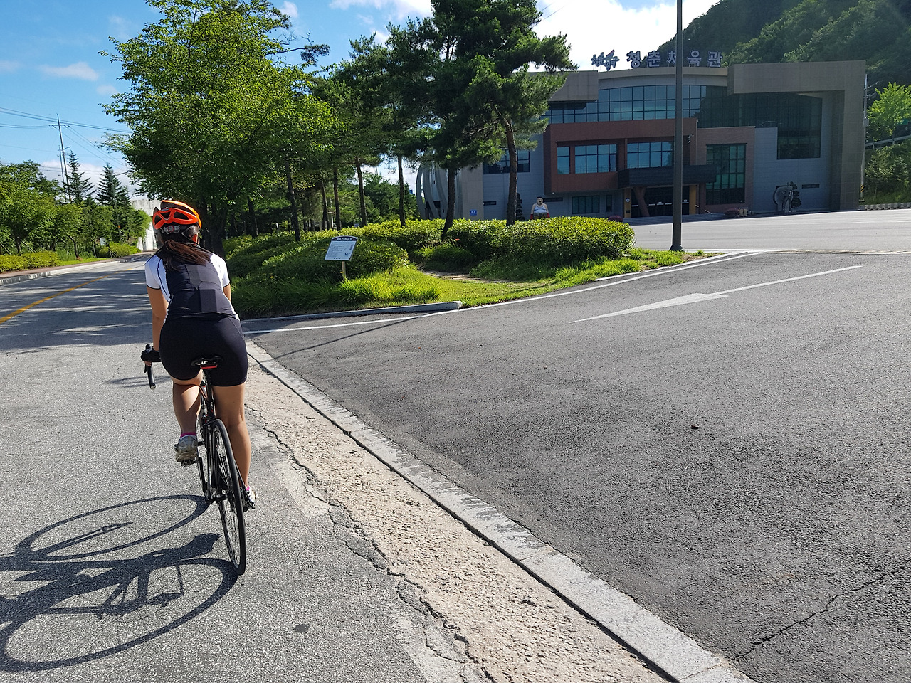 이제 두타연을 빠져나간다. 로드바이크로 비포장길을 다시 빠져나가려니 영 귀찮다.