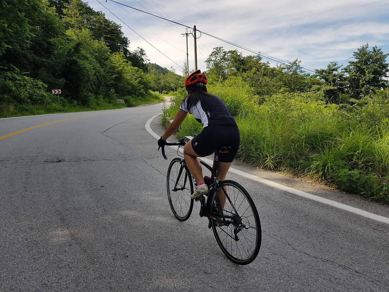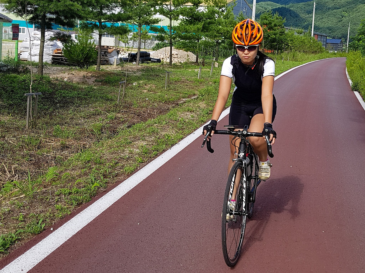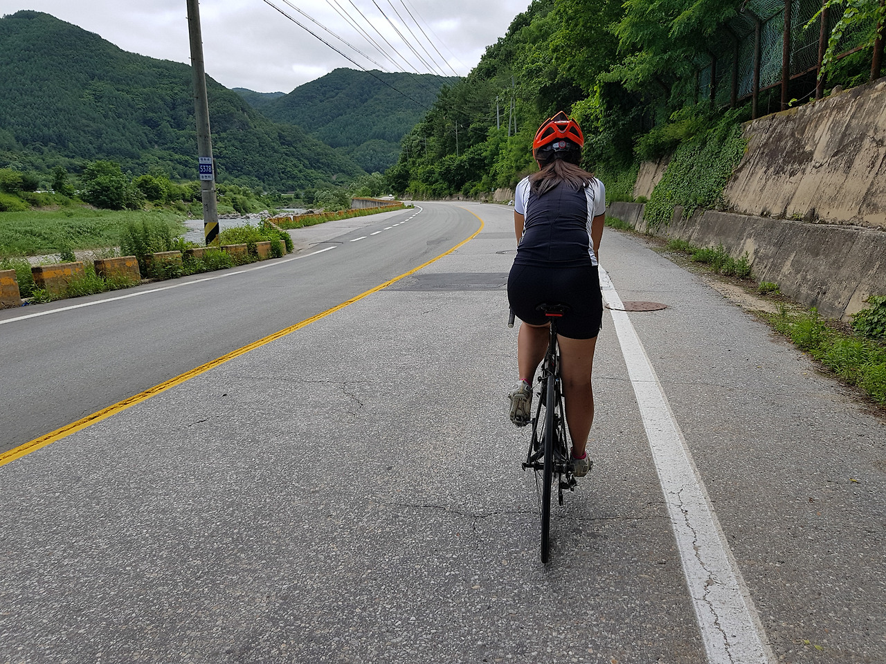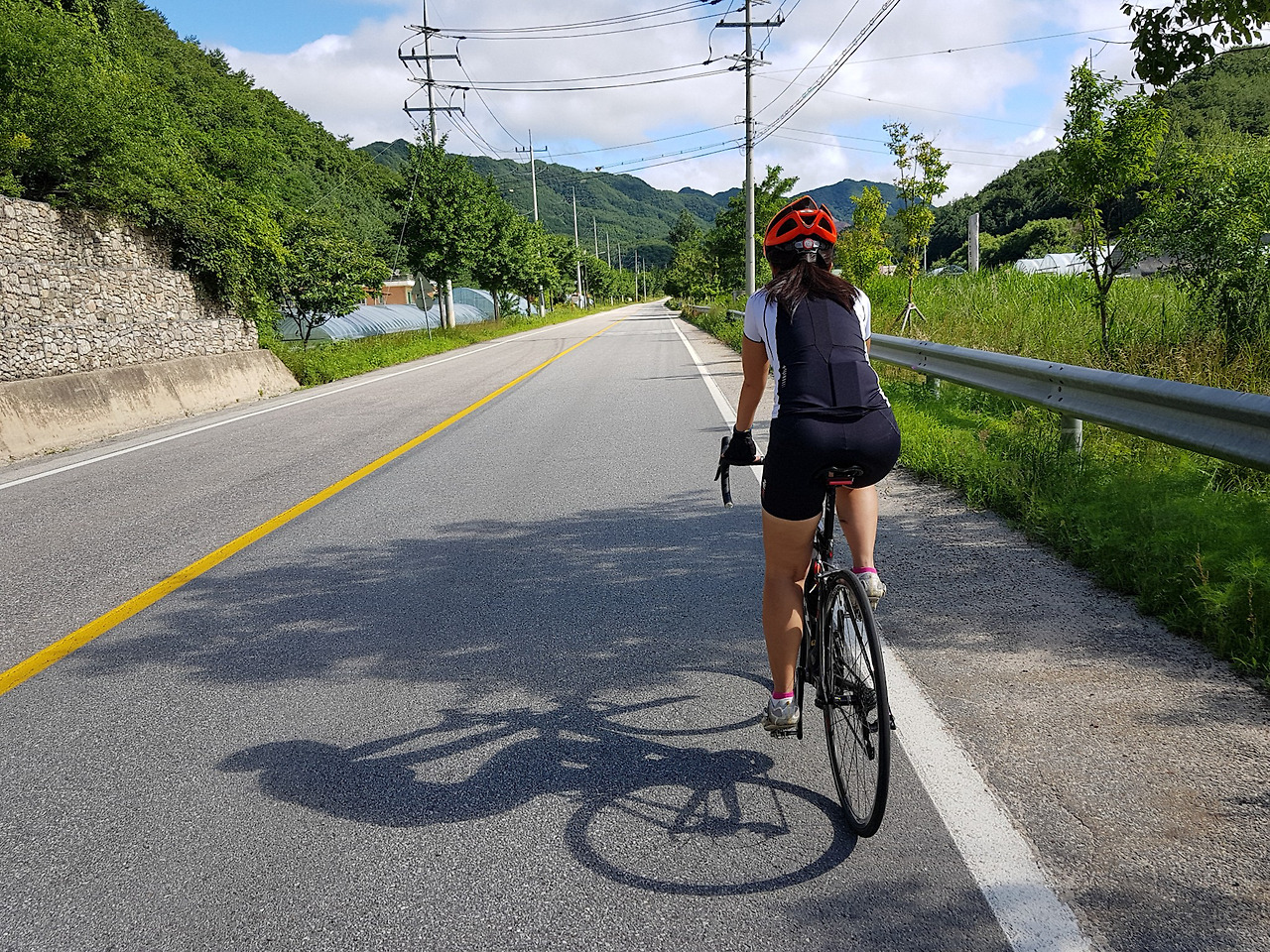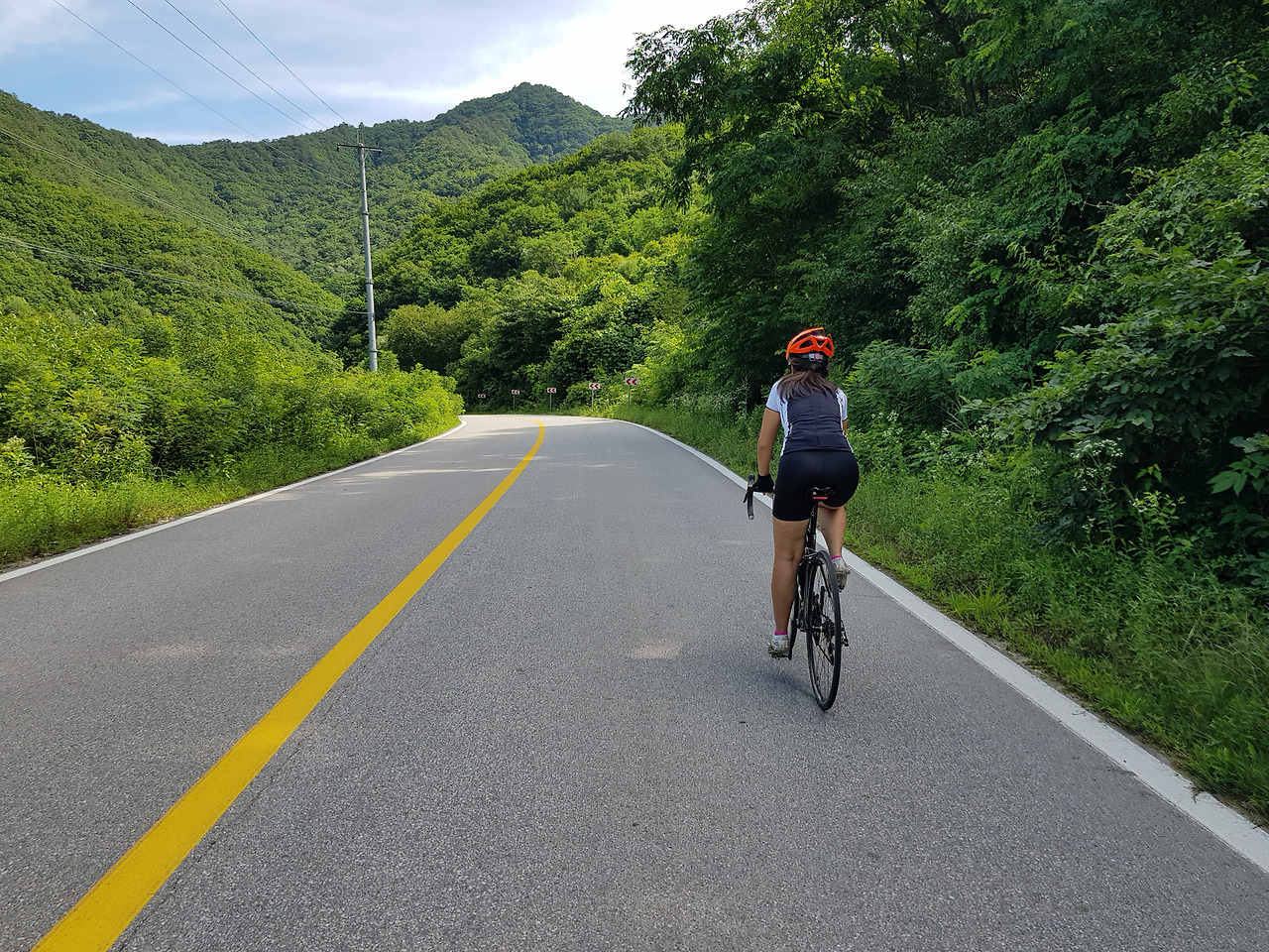 이제 두타연을 빠져나간다. 로드바이크로 비포장길을 다시 빠져나가려니 영 귀찮다.