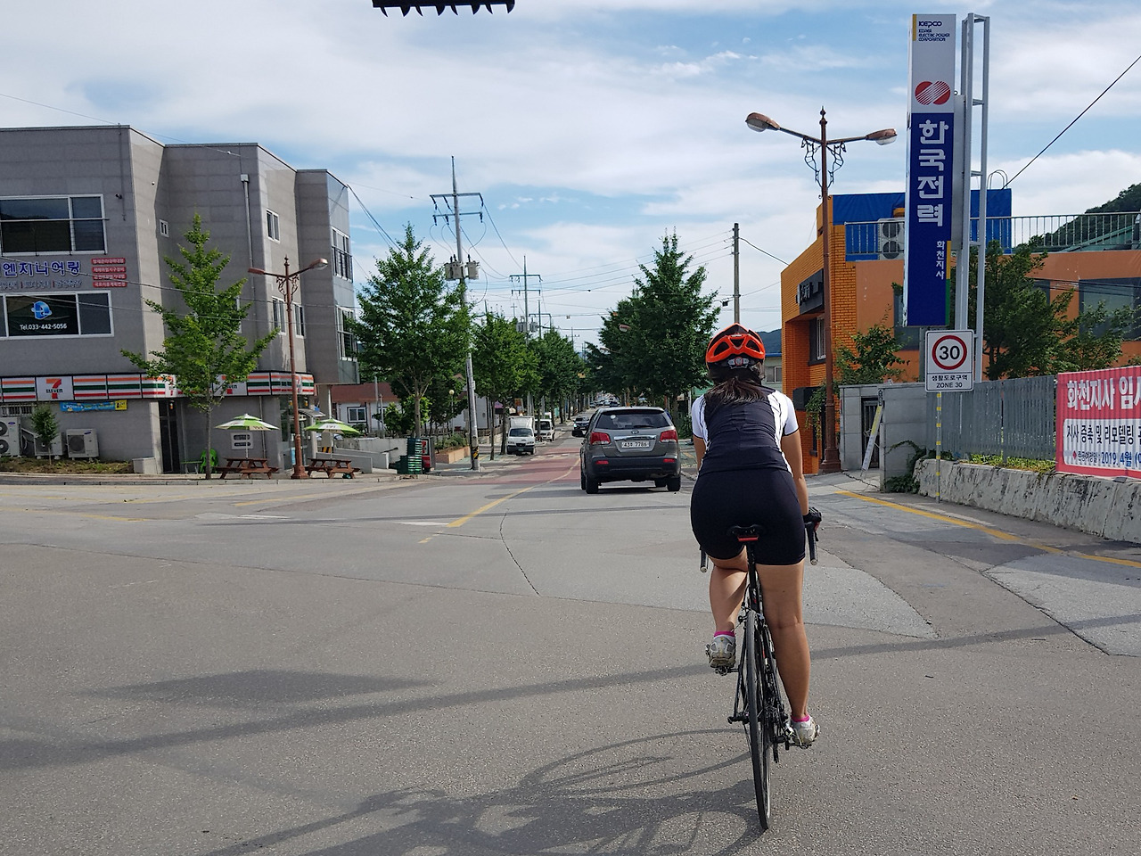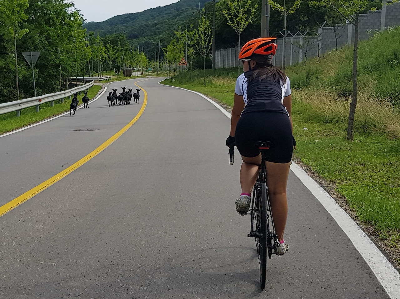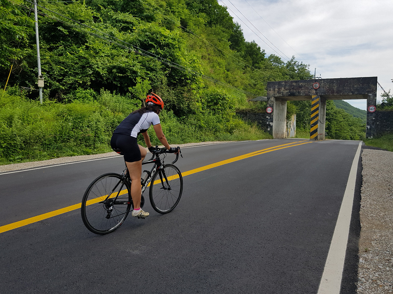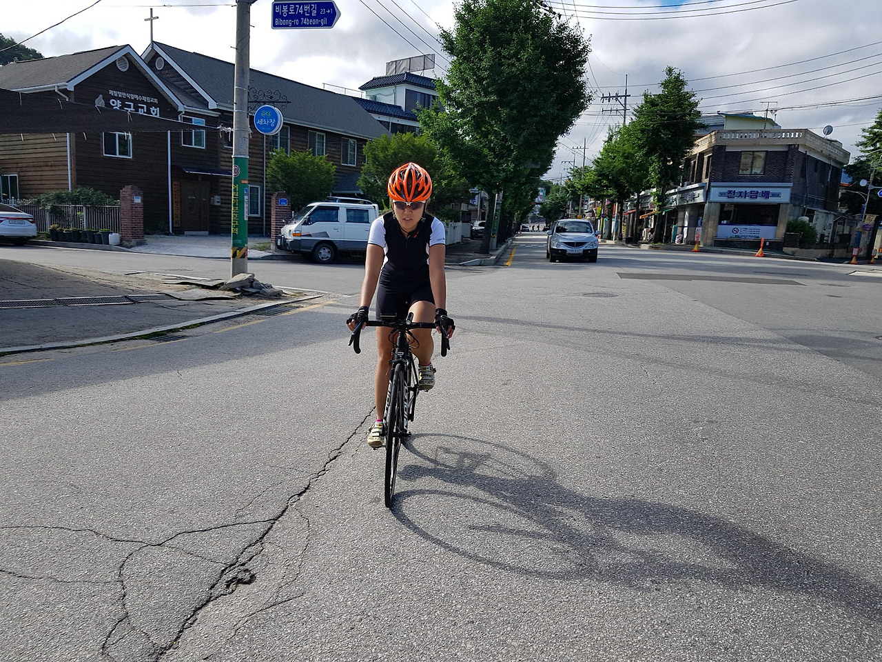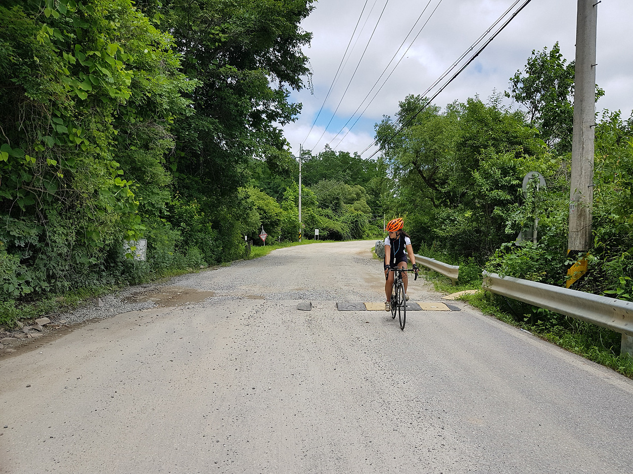 이제 두타연을 빠져나간다. 로드바이크로 비포장길을 다시 빠져나가려니 영 귀찮다.