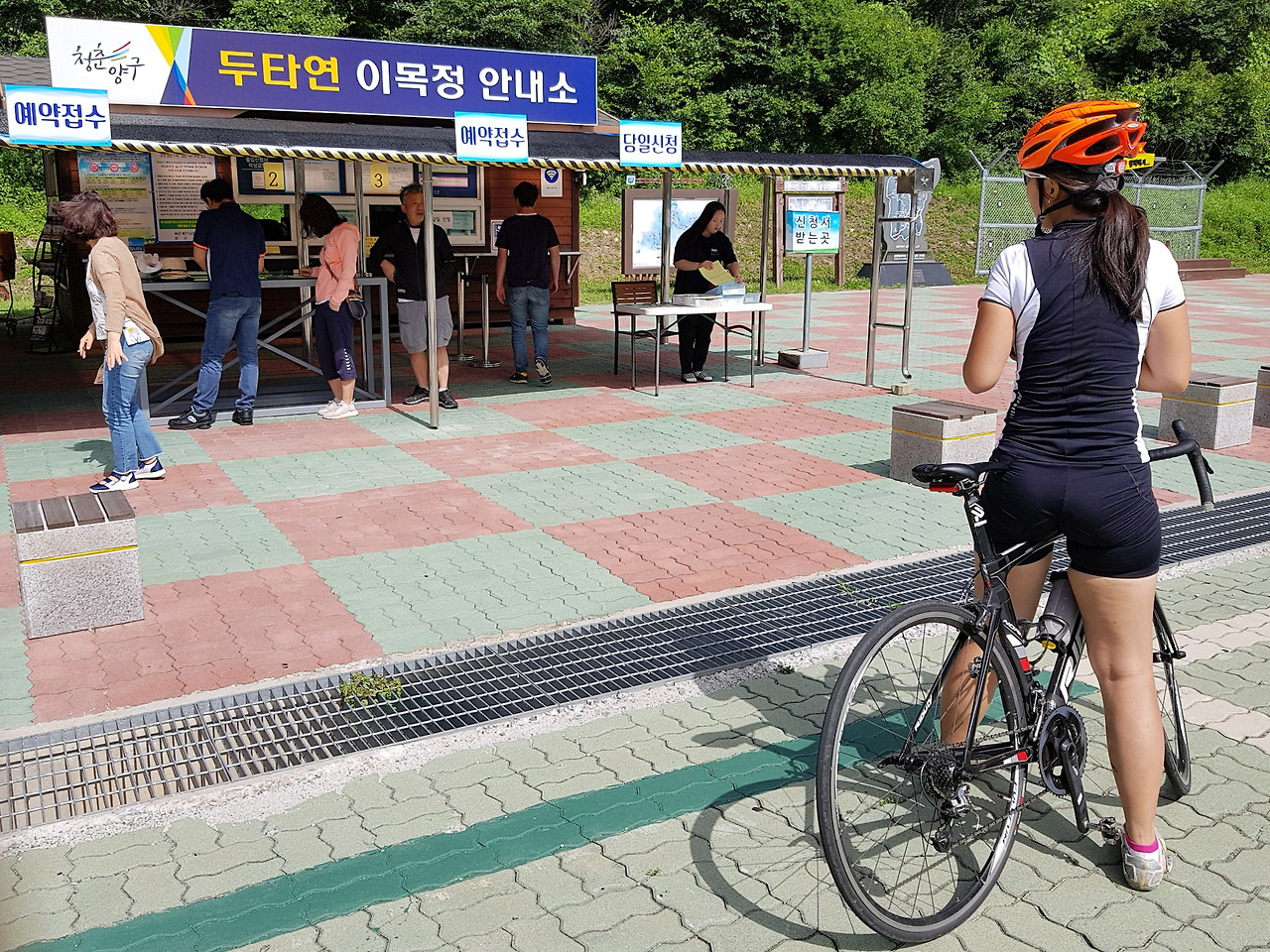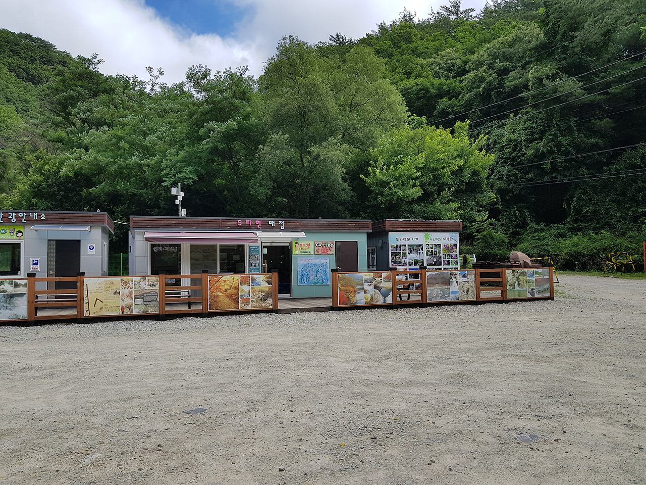 두타연 주차장에 도착해서 매점 앞에 자전거를 묶어둔다. 관광 안내소에는 안내사분들이 있지만 우린 2명 밖에 안되고 가이드 시간을 맞추기 힘드니 그냥 자유롭게 돌아보기로 한다.