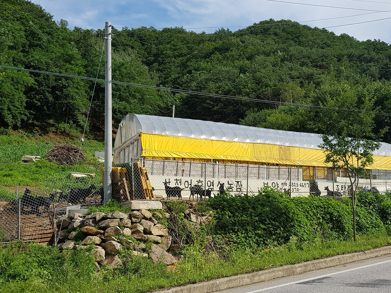 여기서부터 원래는 처녀고개와 딴산유원지를 지나 화천 산소길로 화천 읍내에 들어가는데 빙 돌아가게 된다. 중간에 산수화 터널로 얕은 언덕을 넘으면 바로 화천 읍내로 이어진다. 여기도 중간에 흑염소 목장이 있다.