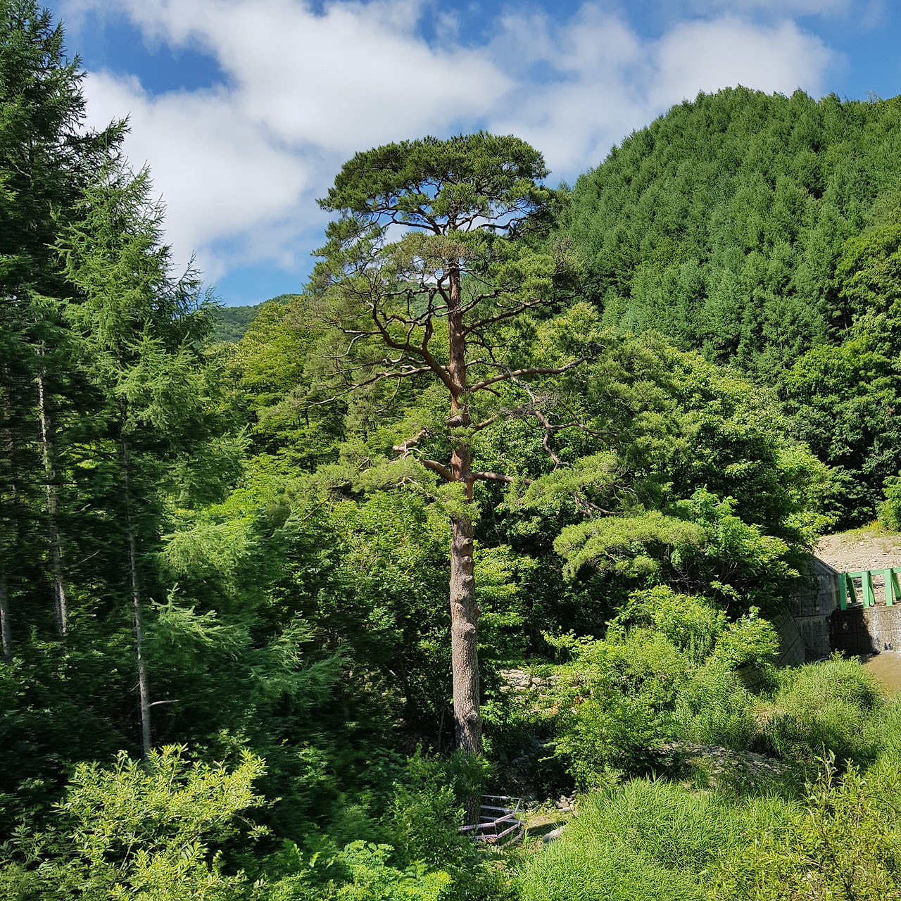 길 근처에 보호수로 지정되 200년 묵은 소나무가 있다.