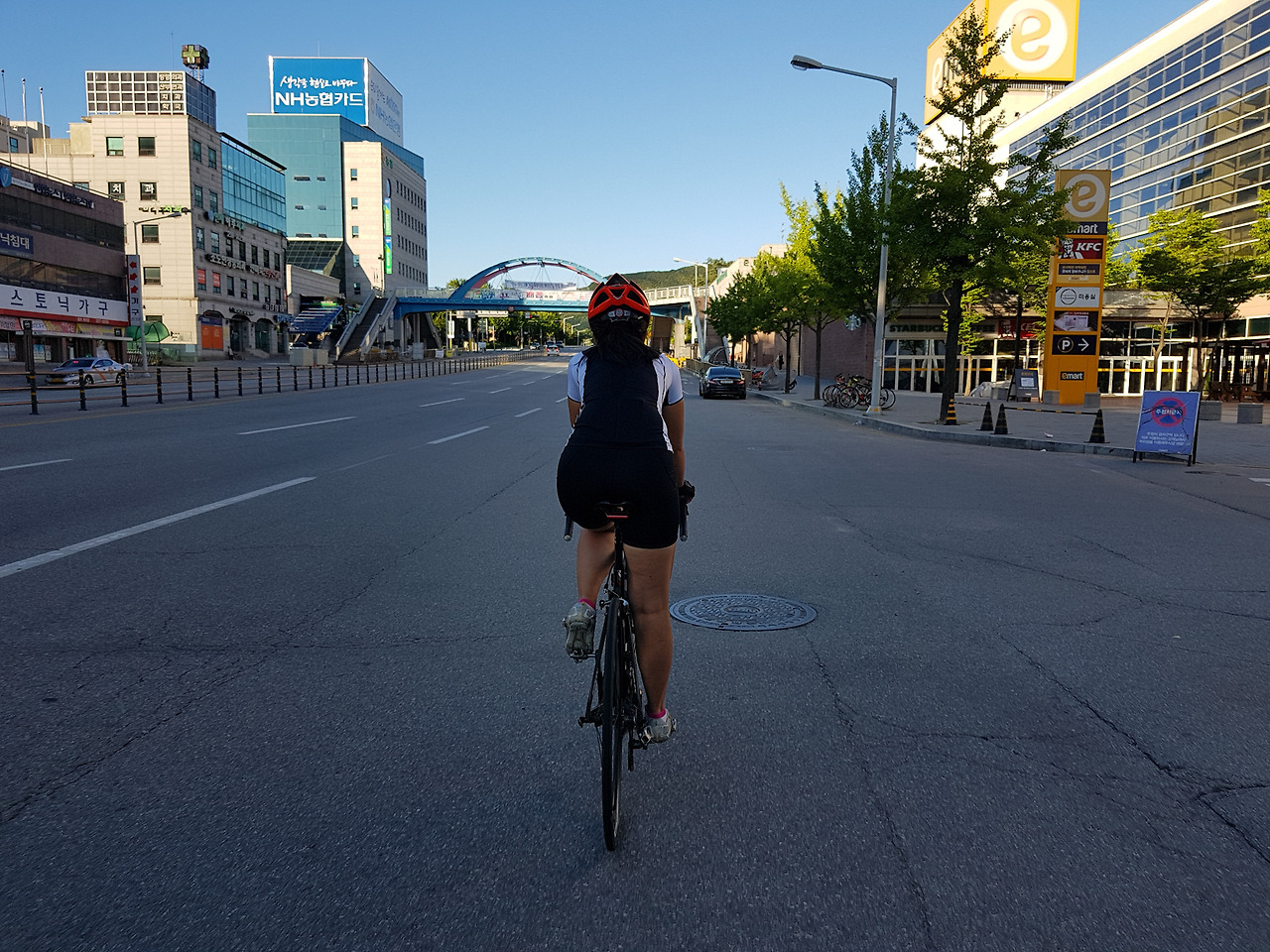 적당히 달릴만한 노면을 골라서 천천히 달린다. 이럴 줄 알았으면 MTB를 끌고 왔지....