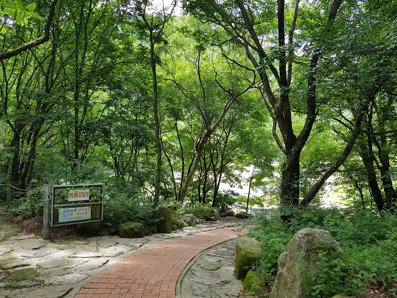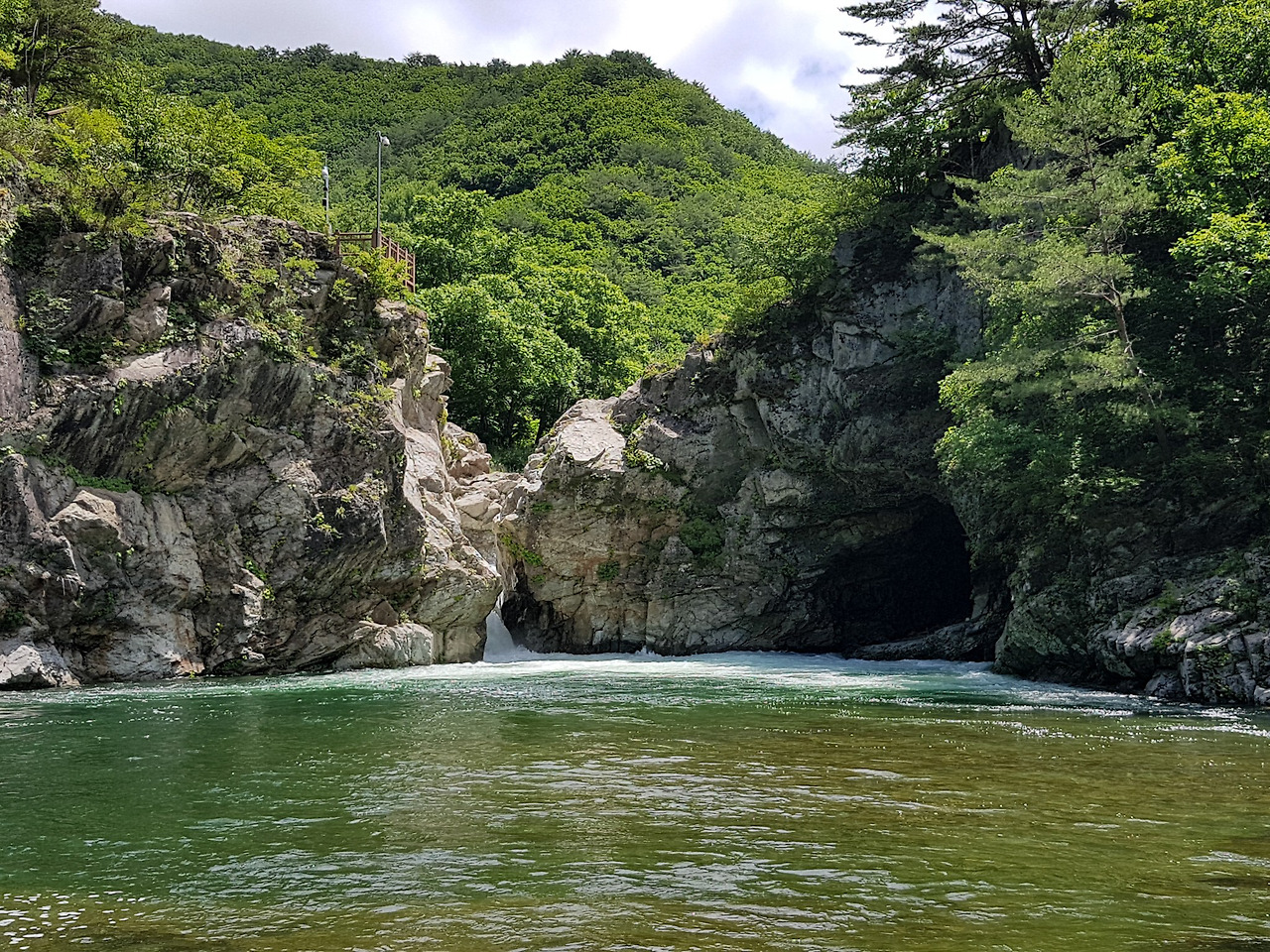 입구에서 내려가자마자 두타연이 보인다. 작은 폭포와 폭포 옆에 동굴이 있다.