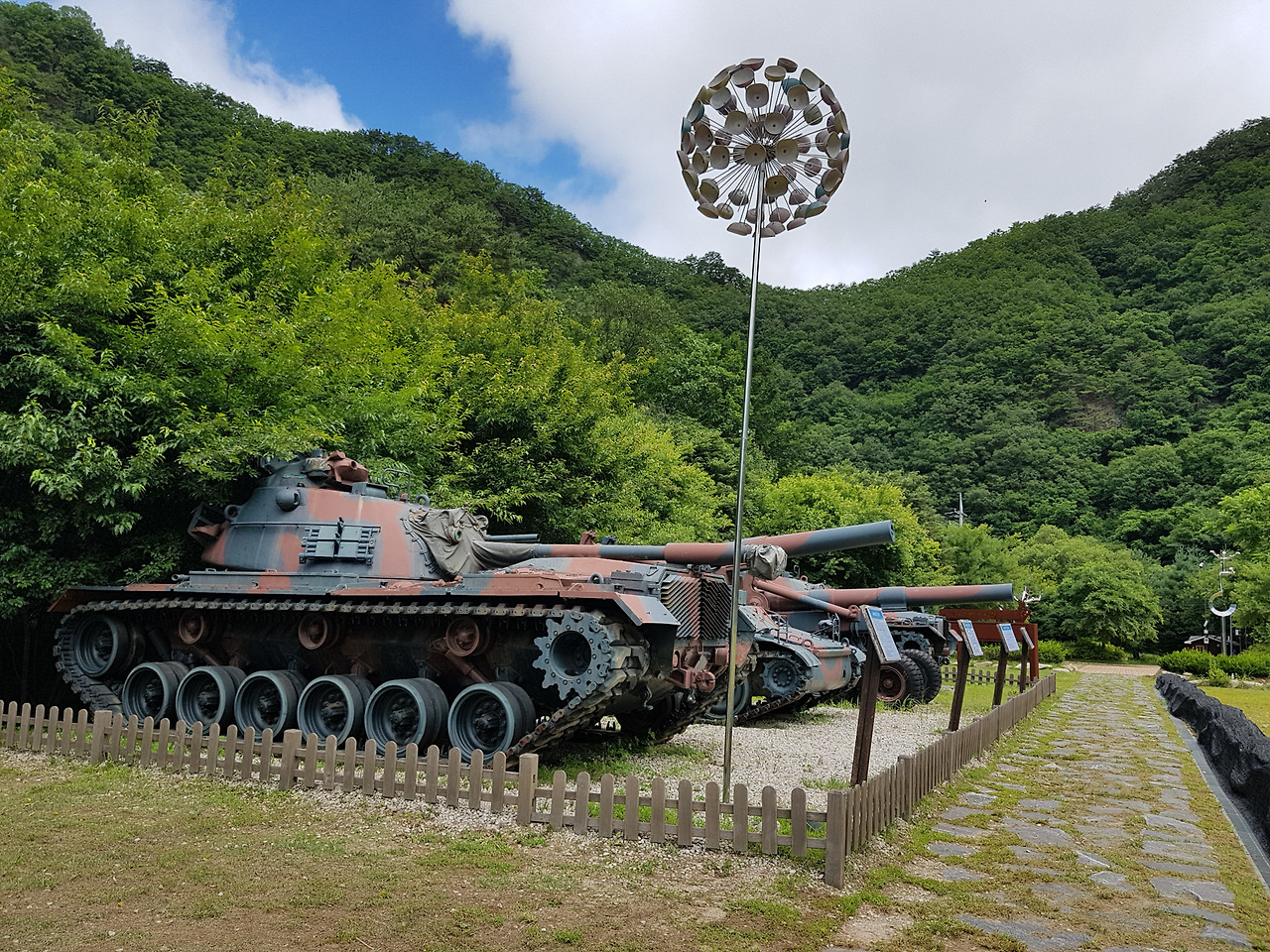 두타사 절터에서 좀더 올라가면 조각공원이 나온다. 다양한 작품들이 있고 탱크나 미사일도 전시되어 있다.