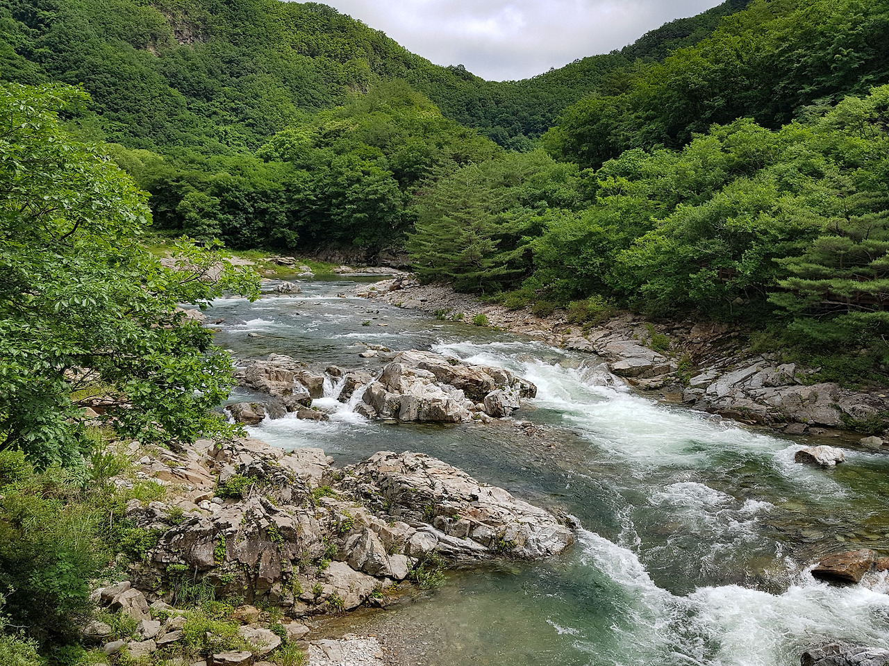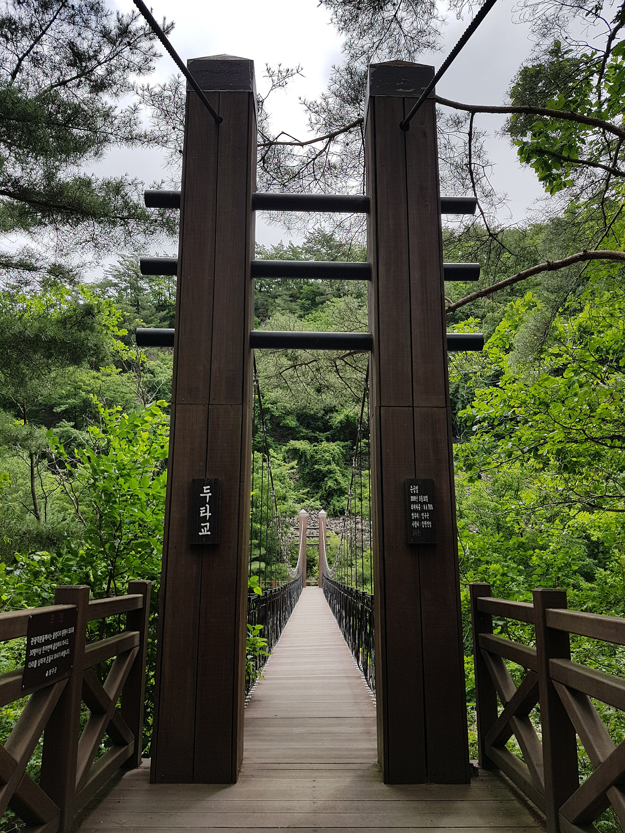 아까 올라갔던 두타연 폭포 바로 위의 저 전망대는 차라리 없었으면 어떨까 싶다. 멋진 자연풍경 사이에 인공물이 너무 도드라지는 느낌이다. 게다가 저 전망대에서 보는 풍경이 썩 좋지는 않으니까 더더욱 쓸모없어 보인다.