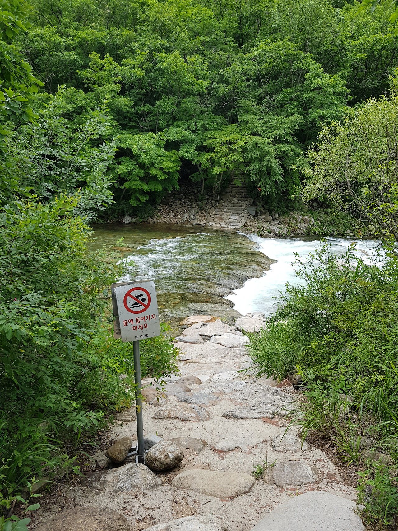 아까 건너지 못했던 징검다리다. 물살이 상당히 거세다.