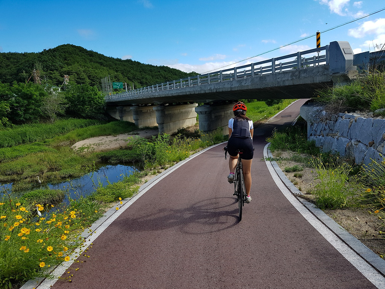 이 자전거길은 군부대 근처에서 꺾여져 전혀 다른 방향인 해안면 가는 길로 이어진다. 중간에 죽곡2교로 자전거길을 벗어나 460번 도로를 따라 가야 한다.