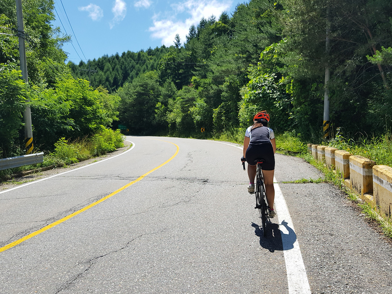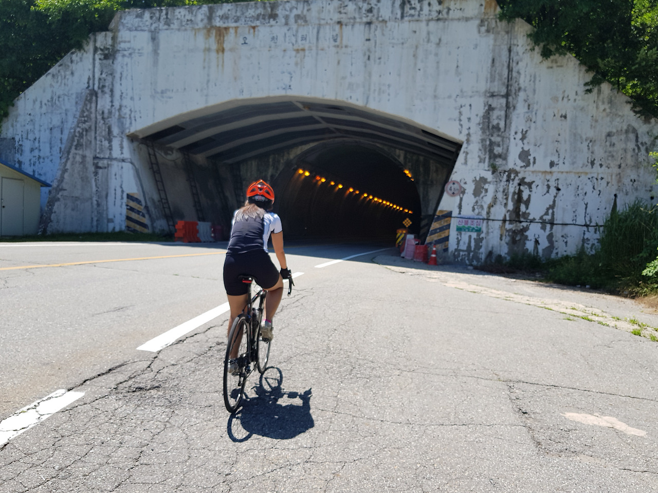 오르막길을 열심히 올라가다 보면 오천터널이 나타난다. 여기도 도고터널과 비슷한 해발 480미터 정도 되는 오르막이다. 터널이 있는 조금 긴 동네 오르막이라고 생각하고 다녔는데 해발 고도를 알게 되니 그 동안 왜 힘들었는지 이해가 된다. 그래도 한참 더워야할 날, 가장 더운 시간인데도 축복받은 날씨라 오르막을 올라가는 것도 시원하다.