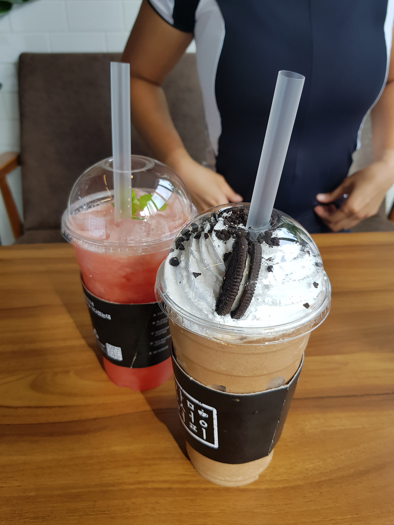 터미널 앞 커피집에서 시원하고 달달한 음료수를 마신다. 자전거를 타고난 직후에 마시는 당분 있는 음료는 근손실을 막아주는 보약이다.