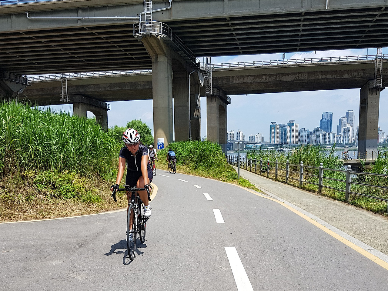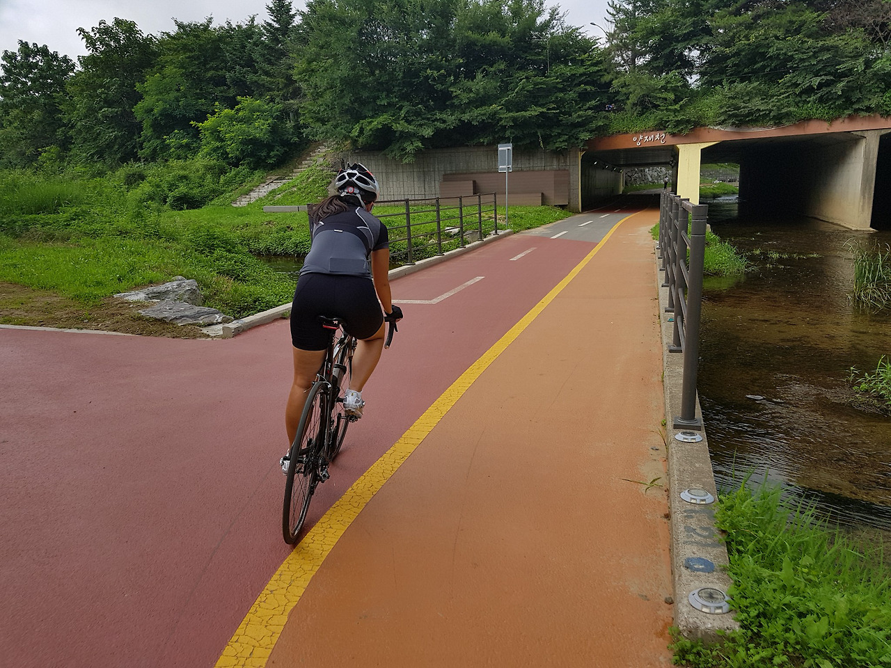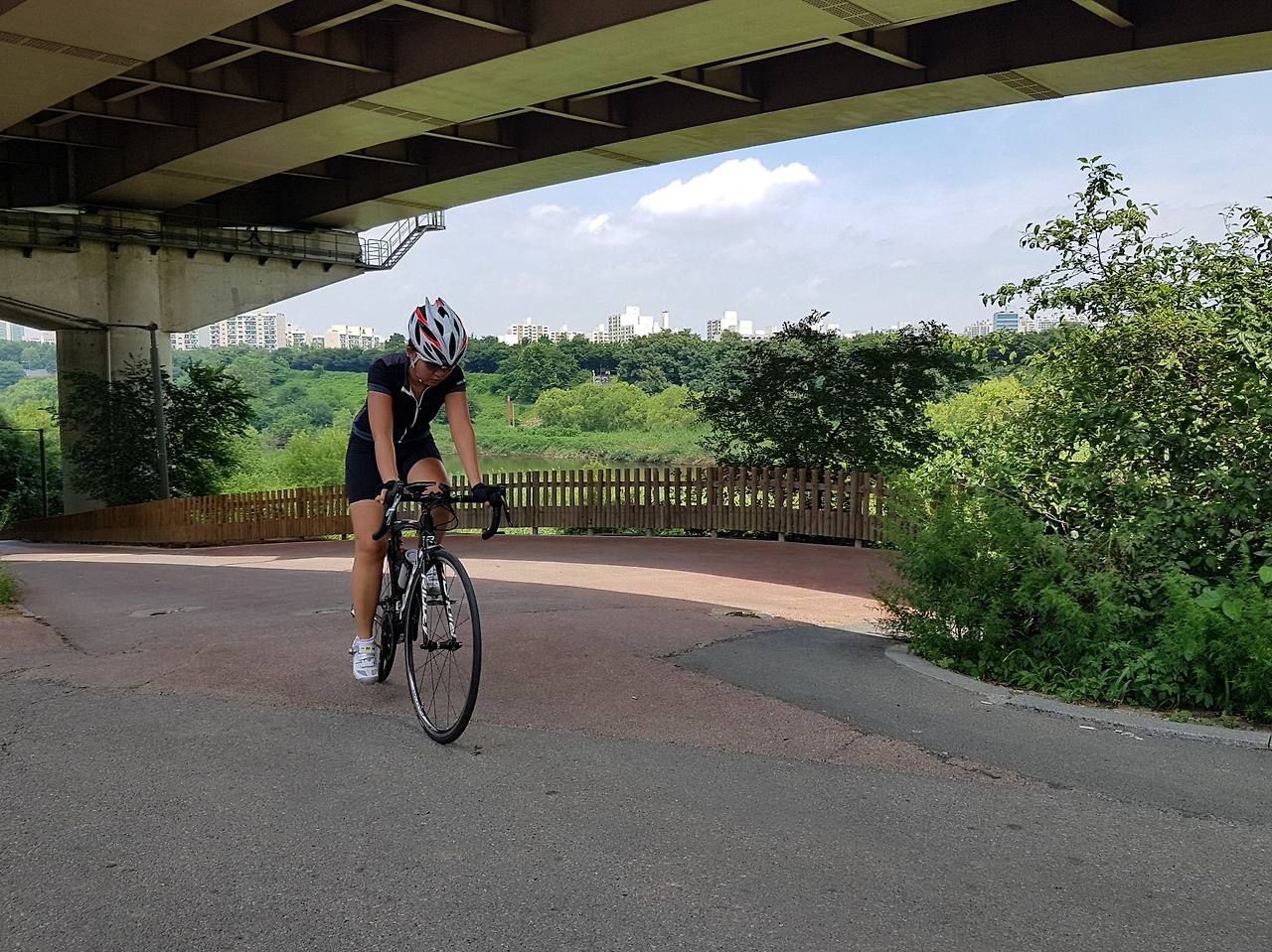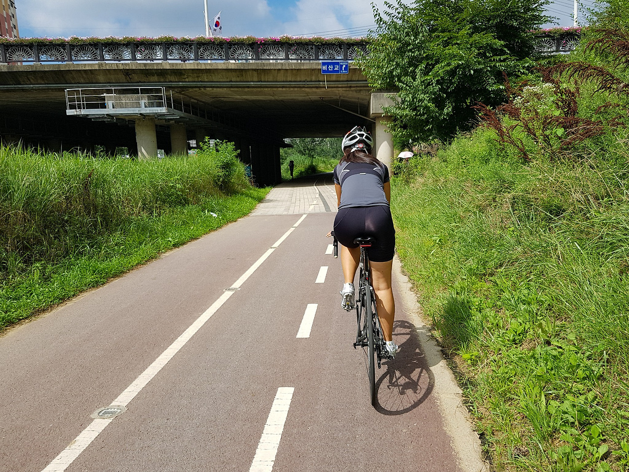 더운 여름에 다리 밑 그늘 속을 달릴 수 있으니 다행이다.