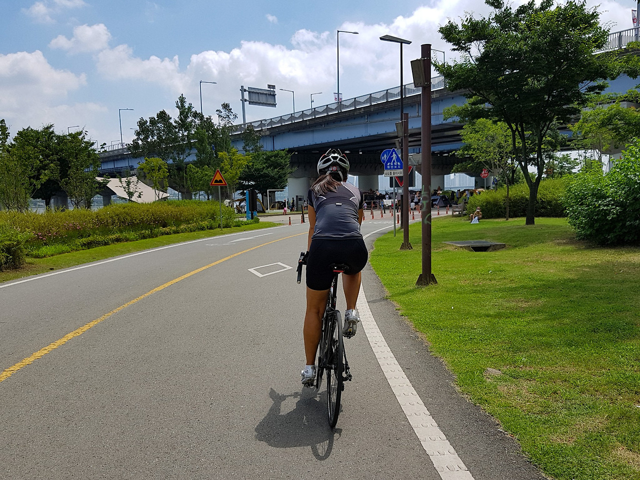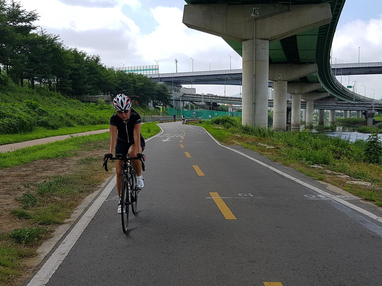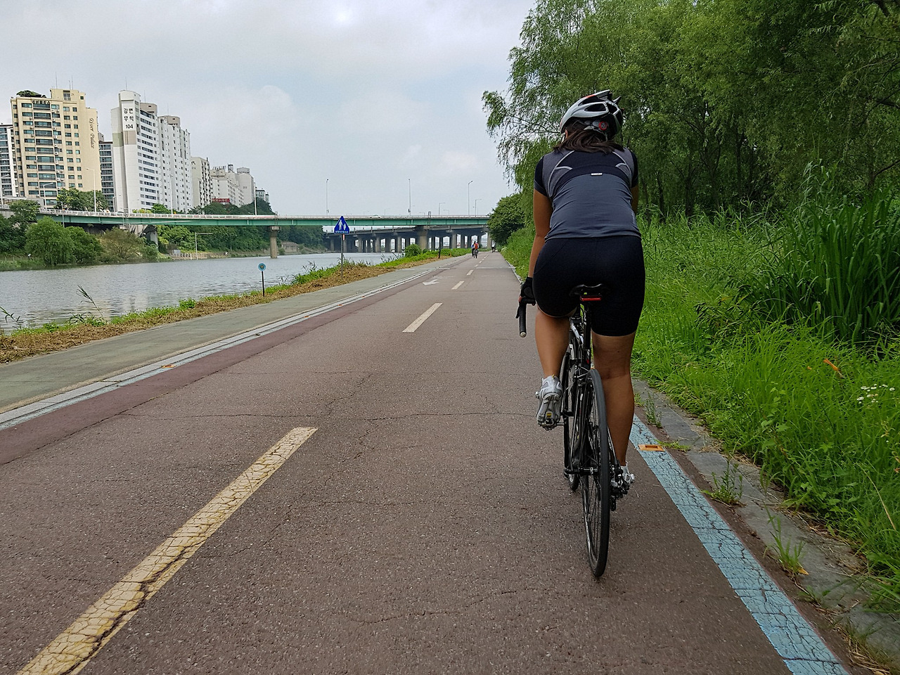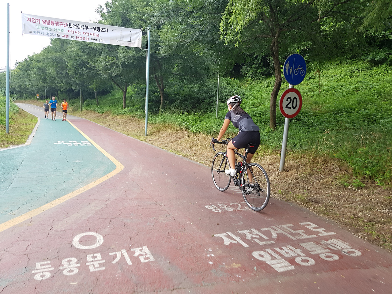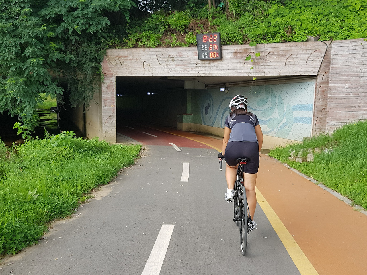 더운 여름에 다리 밑 그늘 속을 달릴 수 있으니 다행이다.