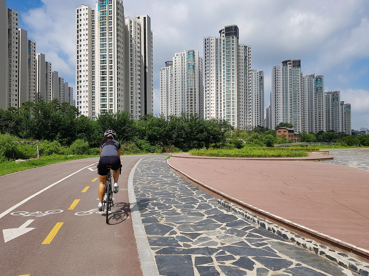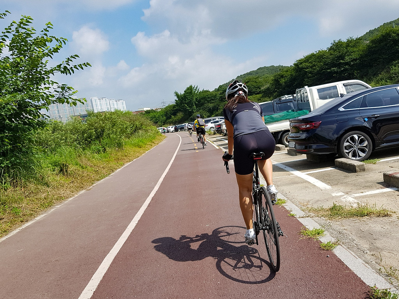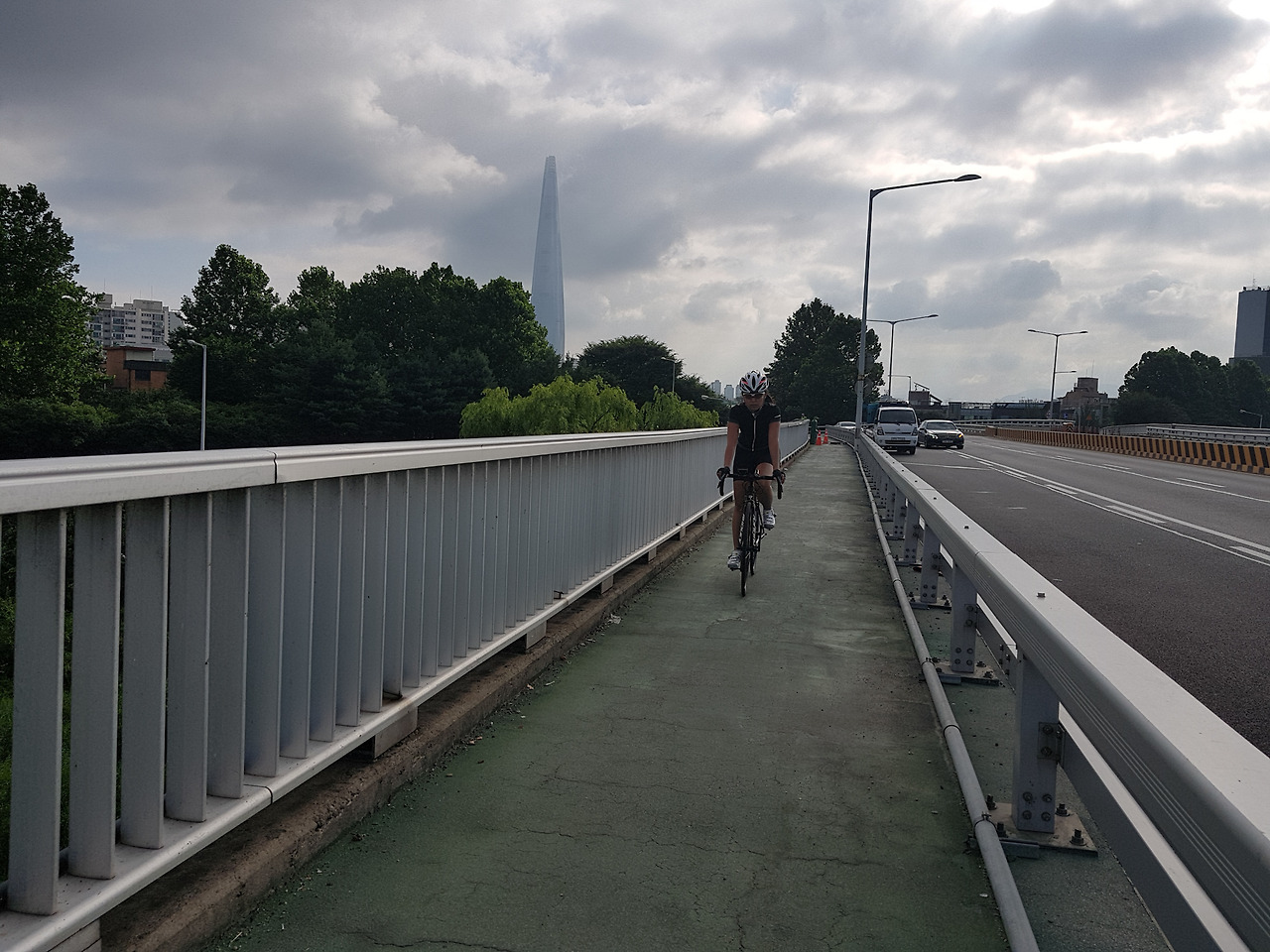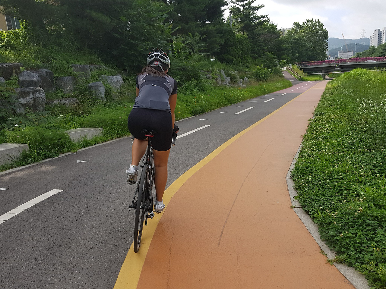 더운 여름에 다리 밑 그늘 속을 달릴 수 있으니 다행이다.