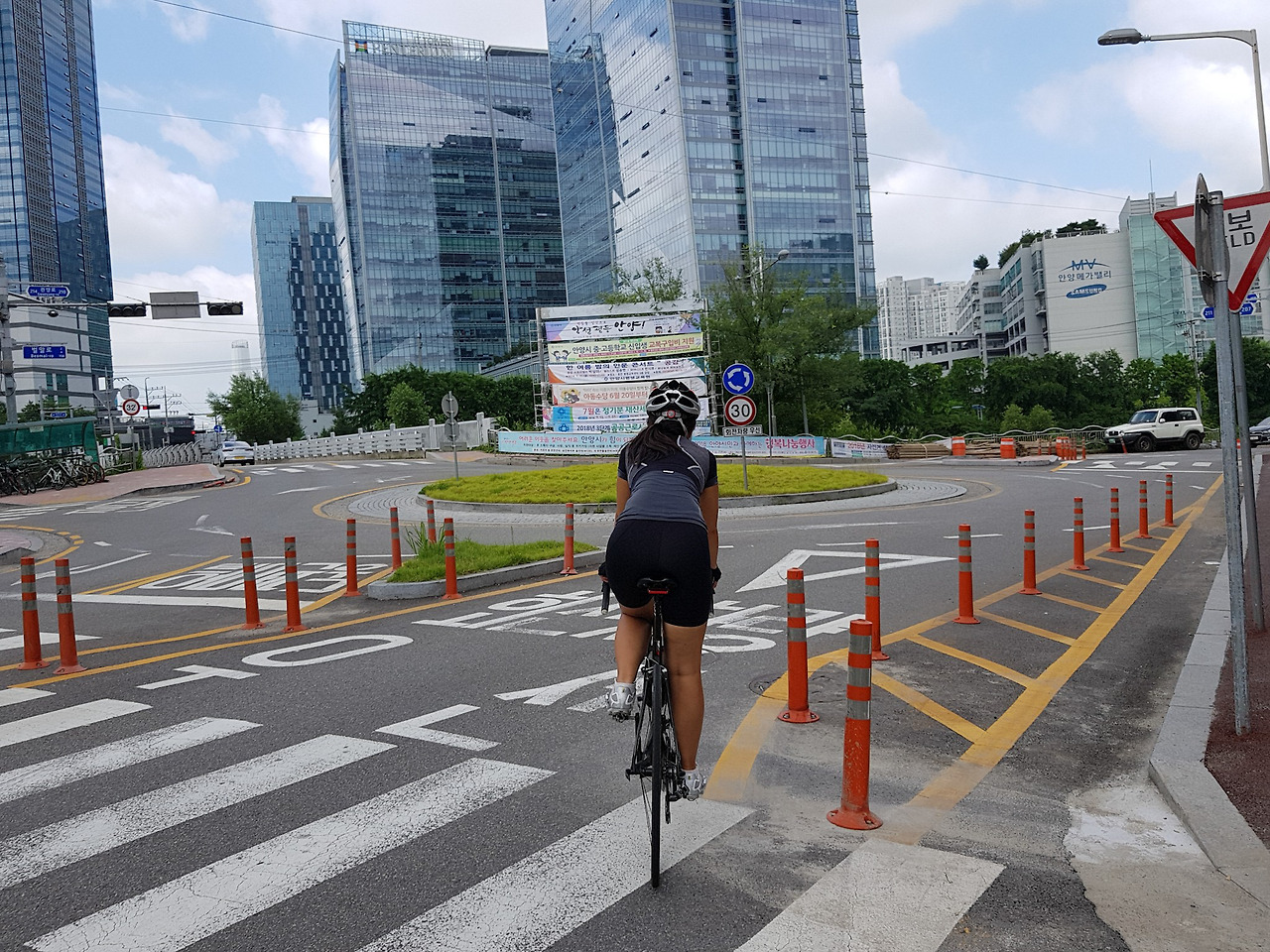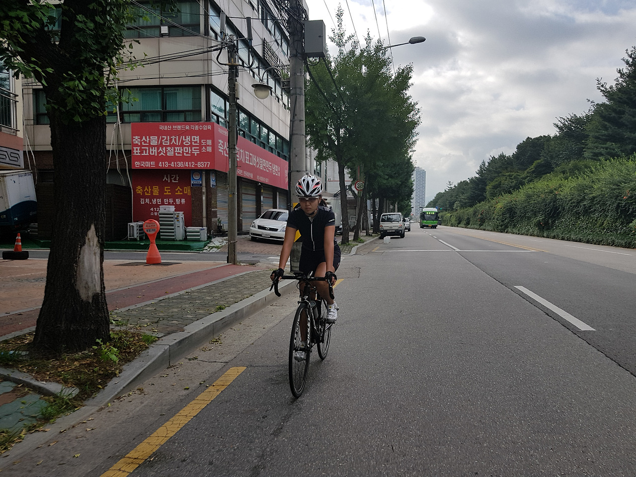 이제 중앙공원에서 과천 시내를 지나 인덕원까지 가야 한다. 가장 쉬운 길은 과천 중앙공원을 오른쪽으로 나오자마자 횡단보도를 건너서 KT건물 앞에서 안양 방향으로 과천 중앙로 큰 길을 따라 계속 달리는 것이다.