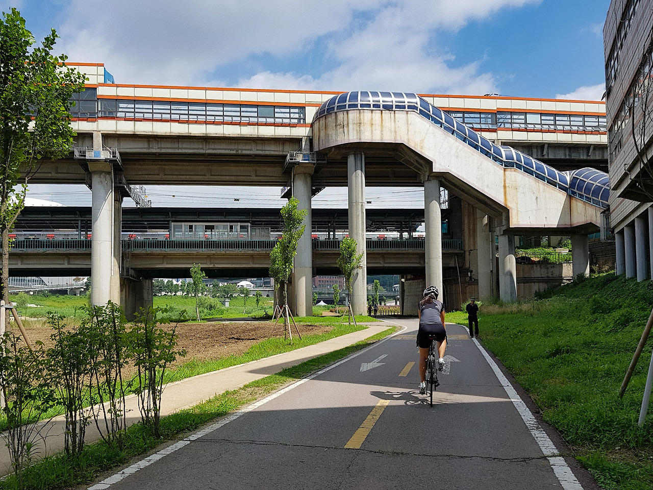 자전거길 위로 전철이 다니는 구일역을 지나면