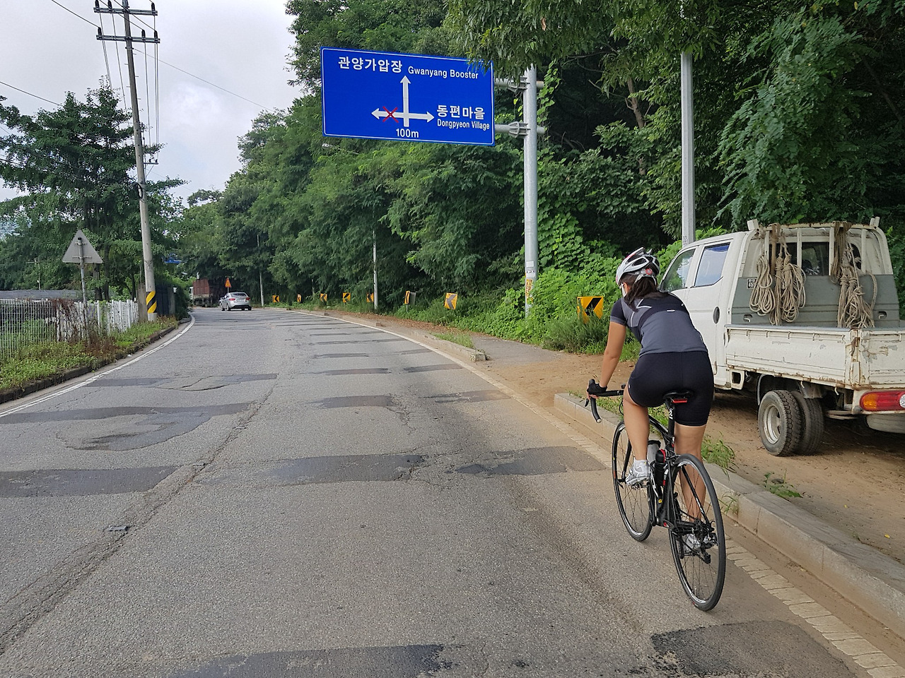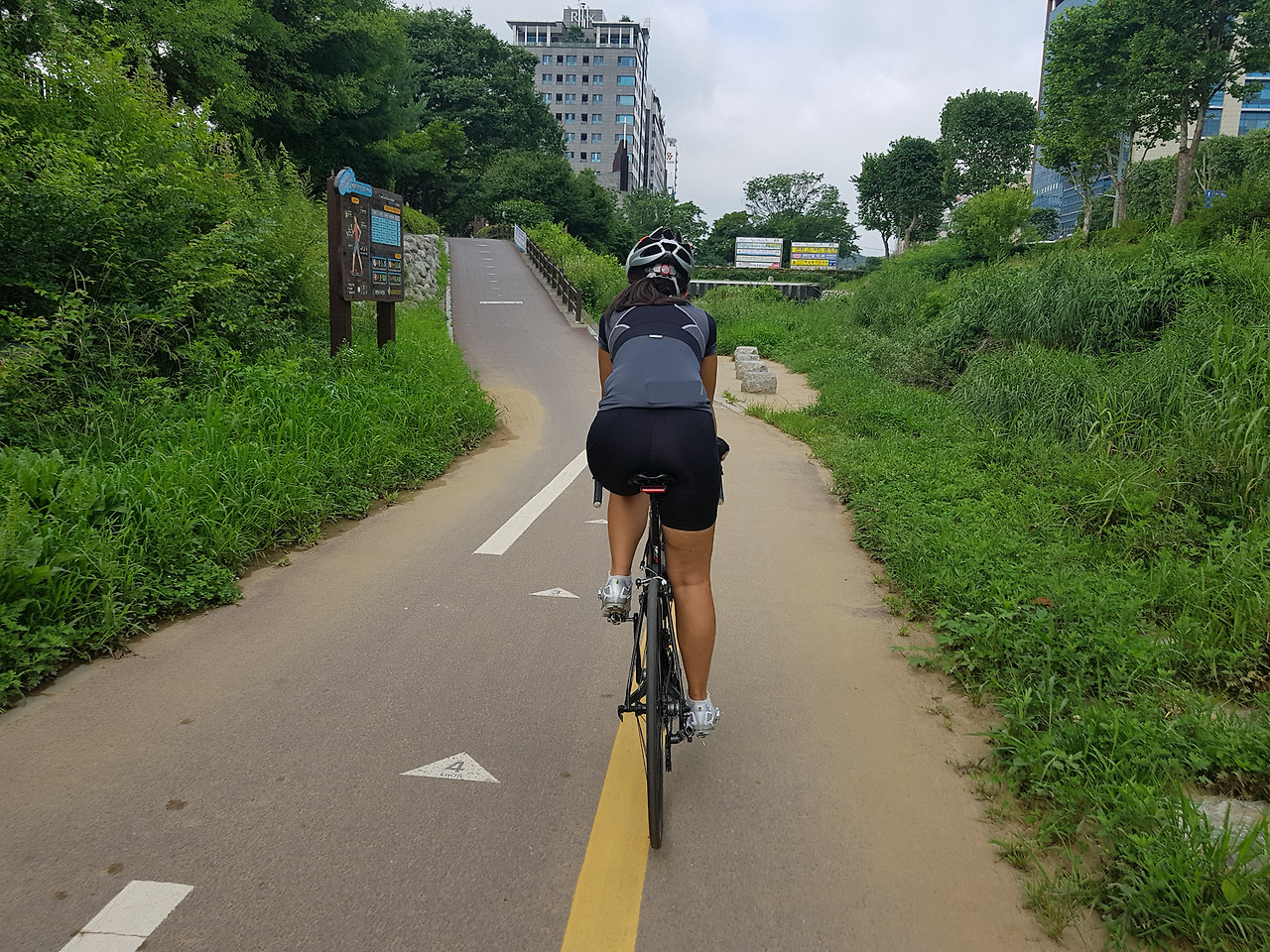 안양천 자전거길을 달리다보면 중간에 한두 번 정도 급작스럽게 오르막길이 나타난다. 보통은 한 번인데 여름에 물놀이장 개장 때문에 언덕길로 우회시키는 경우가 있다.