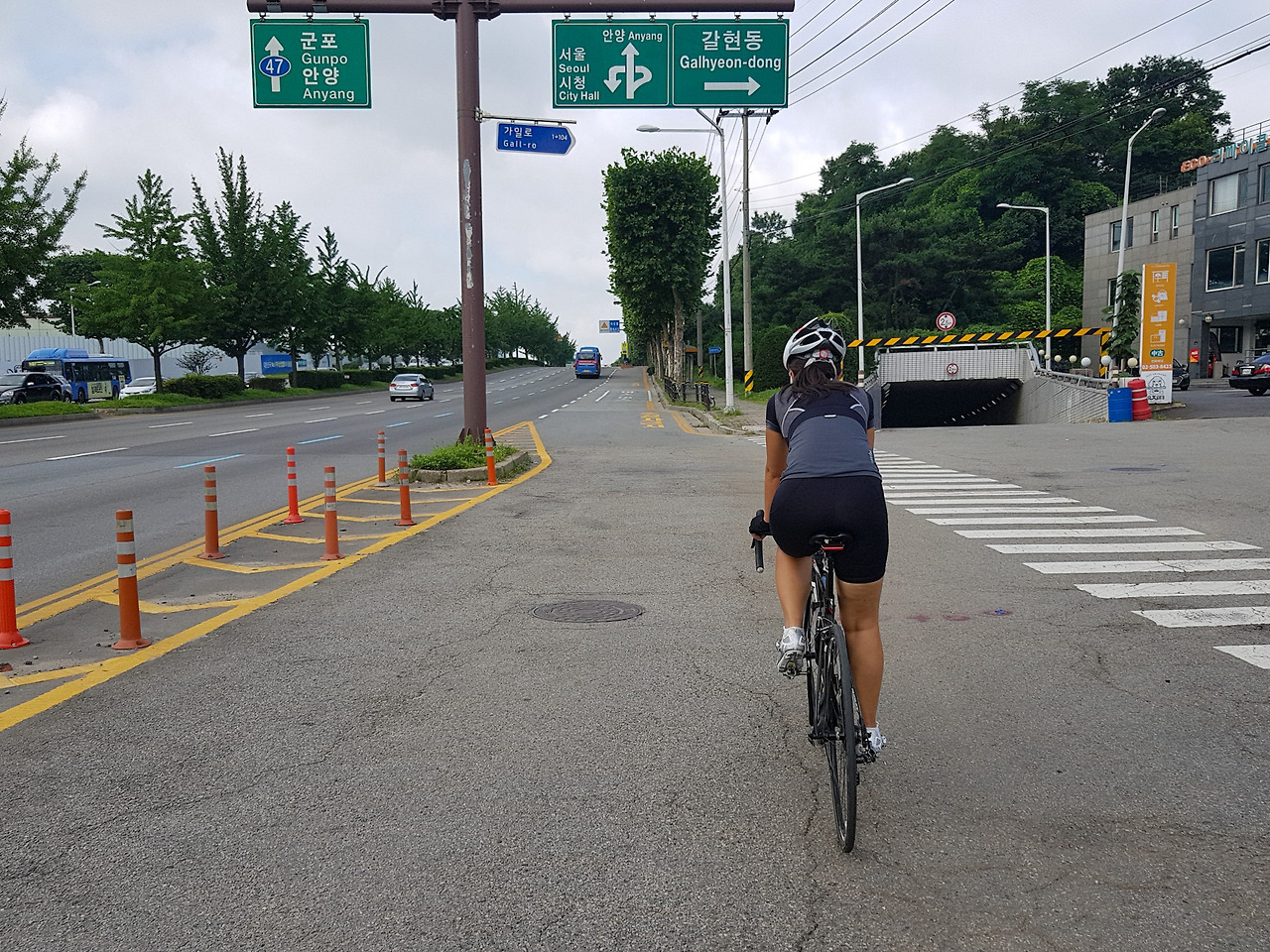 굴다리를 지나면 이제 과천시다. 여전히 관악산을 바라보면서 달릴 수 있다.