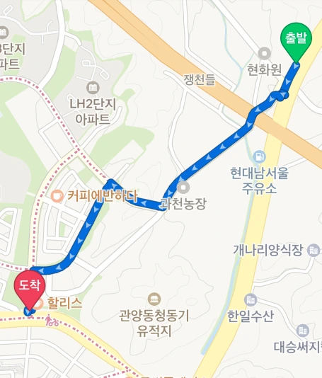 양재천 과천 구간에서도 아까 말했듯이 절대 자전거길을 벗어나 올라가지 말고 끝까지 천변 자전거길을 따라 가는 것이다.