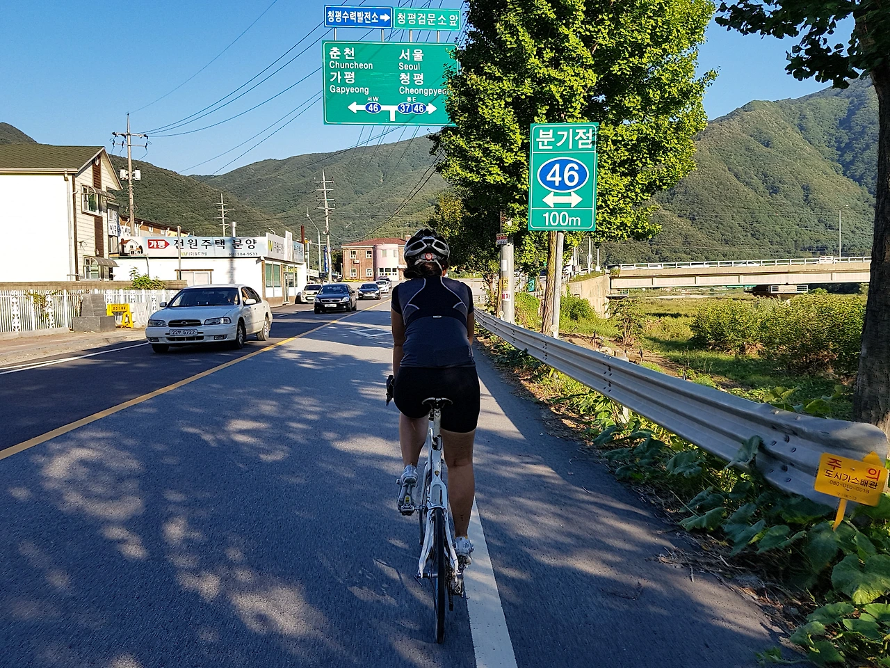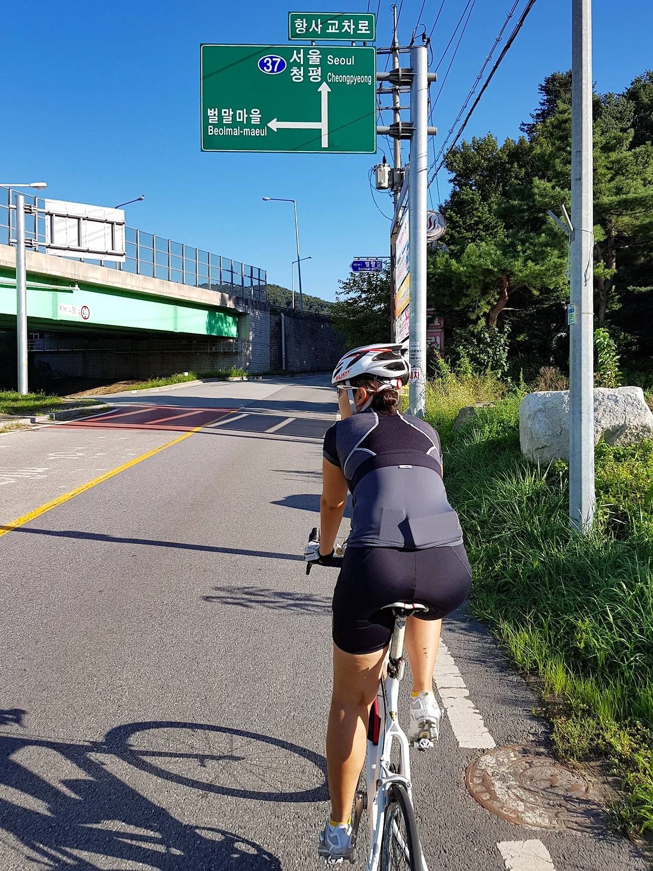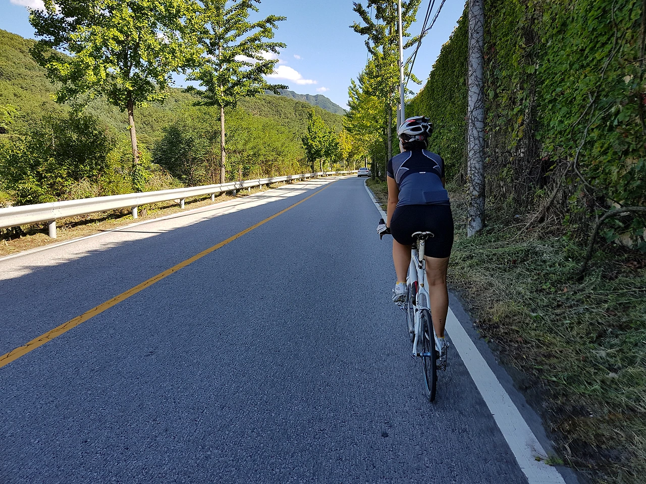 항사교차로에서 37번 도로로 올라가자. 중앙분리대가 있고 차들이 고속으로 달리는 구간이지만 차량 통행이 많지 않으면서 갓길이 넉넉하고 겨우 500m만 가면 바로 지방도로 빠질 수 있으니 전혀 부담없다.