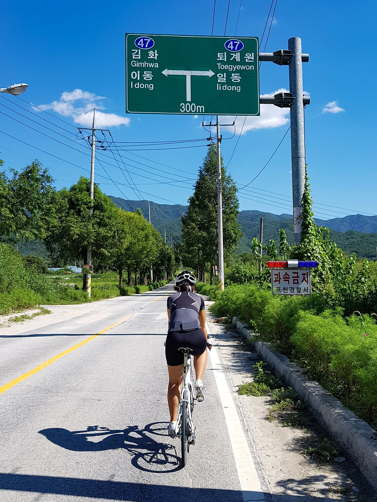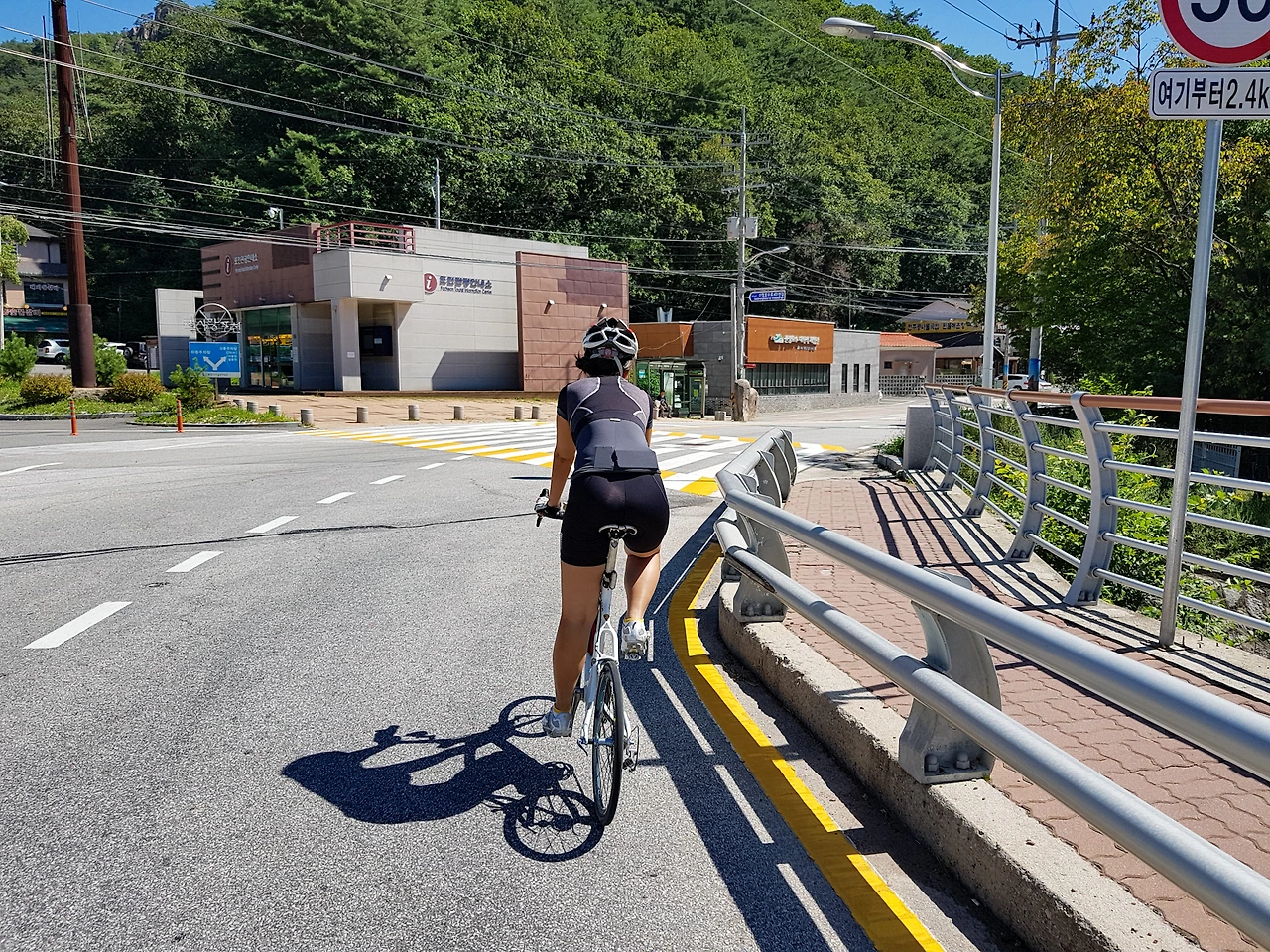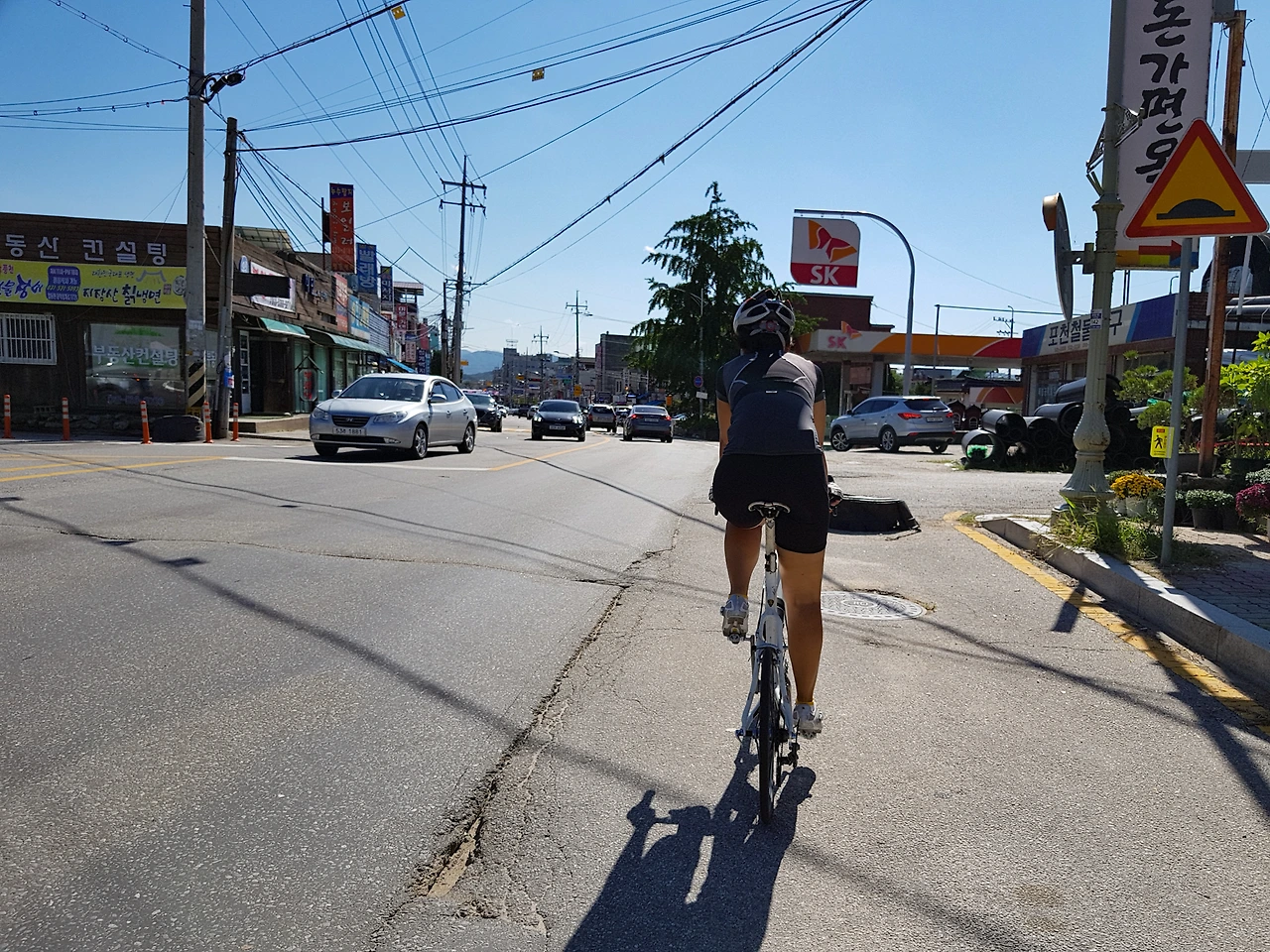 항사교차로에서 37번 도로로 올라가자. 중앙분리대가 있고 차들이 고속으로 달리는 구간이지만 차량 통행이 많지 않으면서 갓길이 넉넉하고 겨우 500m만 가면 바로 지방도로 빠질 수 있으니 전혀 부담없다.
