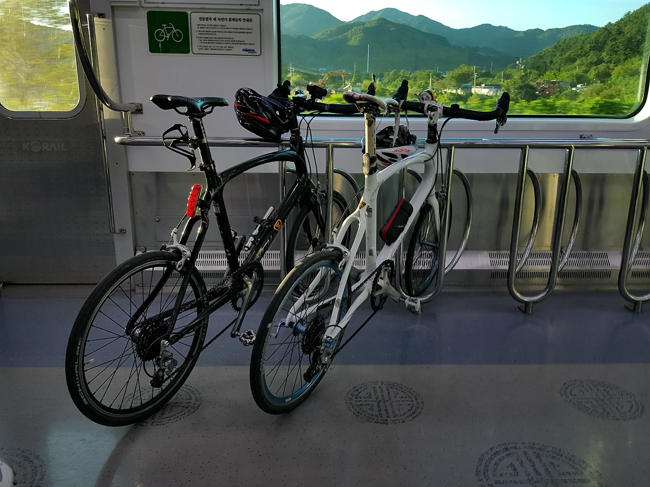 토요일이지만 오후 시간이라 전철 자전거칸이 텅텅 비었다. 역 앞 커페에서 커피 한 잔 사서 자전거를 전철에 싣고 돌아온다.