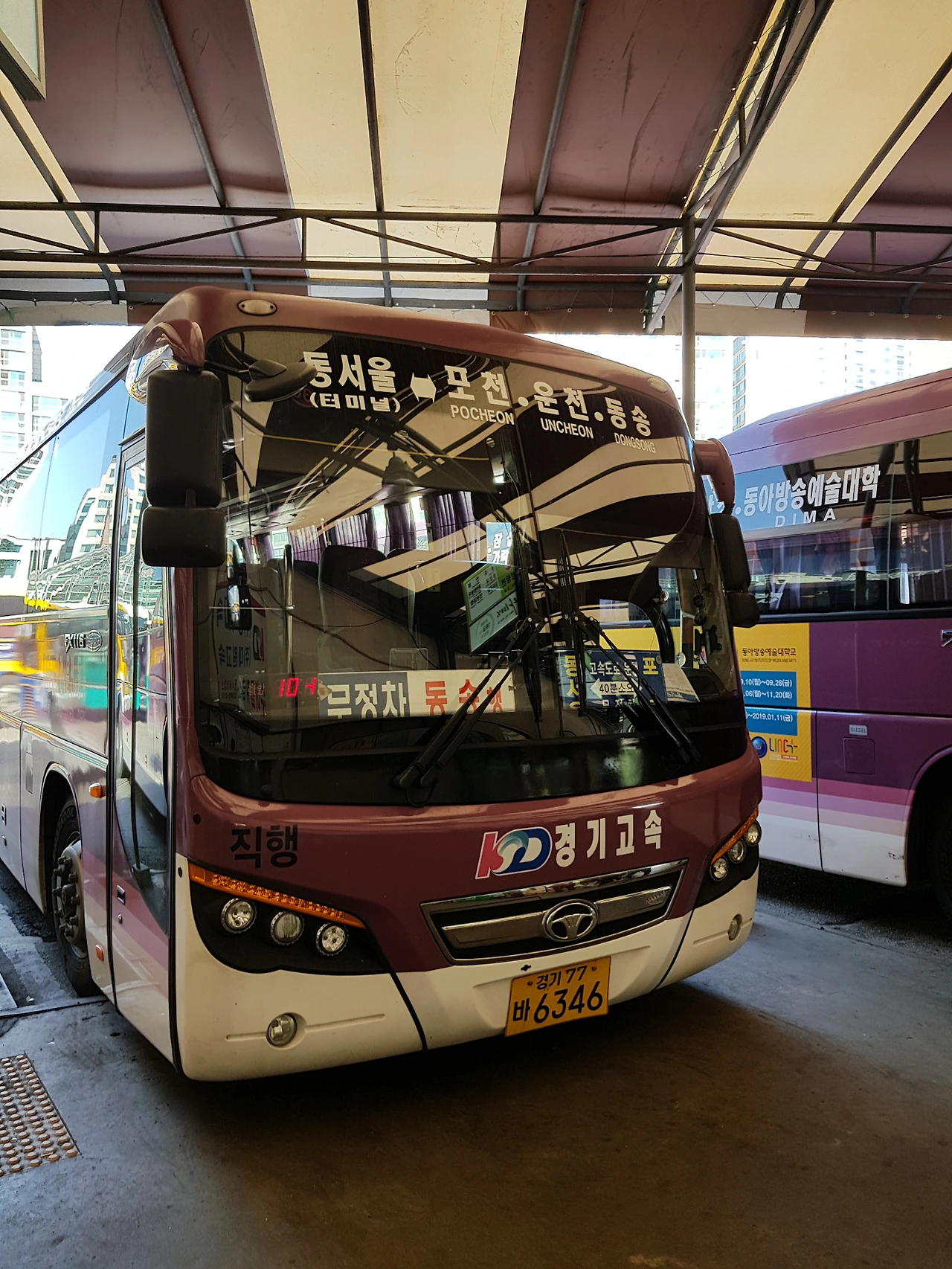동서울 터미널에서 운천으로 가는 버스는 번호가 달린 시외버스인 3000번 버스와 조금 더 빨리 가는 무정차 버스가 있다. 배차가 20분 간격이니 먼저 탈 수 있는 것을 탄다.