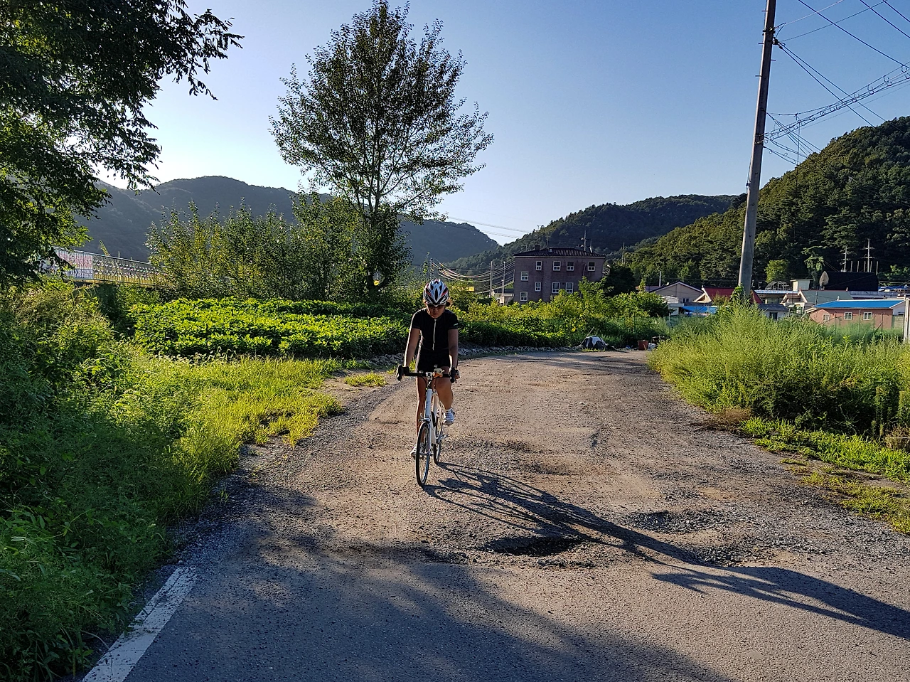 검문서 근처에서 마을길로 들어가 북한강 자전거길로 들어간다. 근데 하필 마을 입구부터 잠깐 비포장길이 있다.