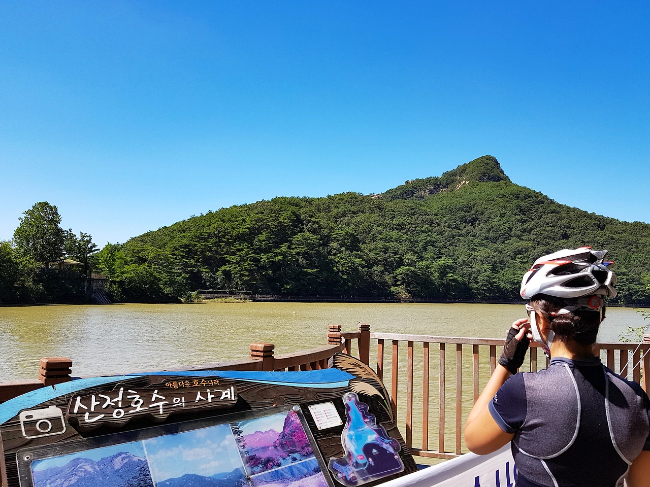원래 산정호수는 이렇게 크지 않았는데 자연적인 호수에 일제 시대에 제방을 축조해서 이렇게 저수지 같아졌다고 한다. 호수에는 모터보트도 다니고 오리배도 둥둥 떠있다.