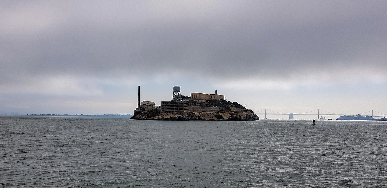 감옥이 있었던 알카트라즈섬 근처를 지나간다. 알카트라즈 뒤로 베이브릿지도 보인다.